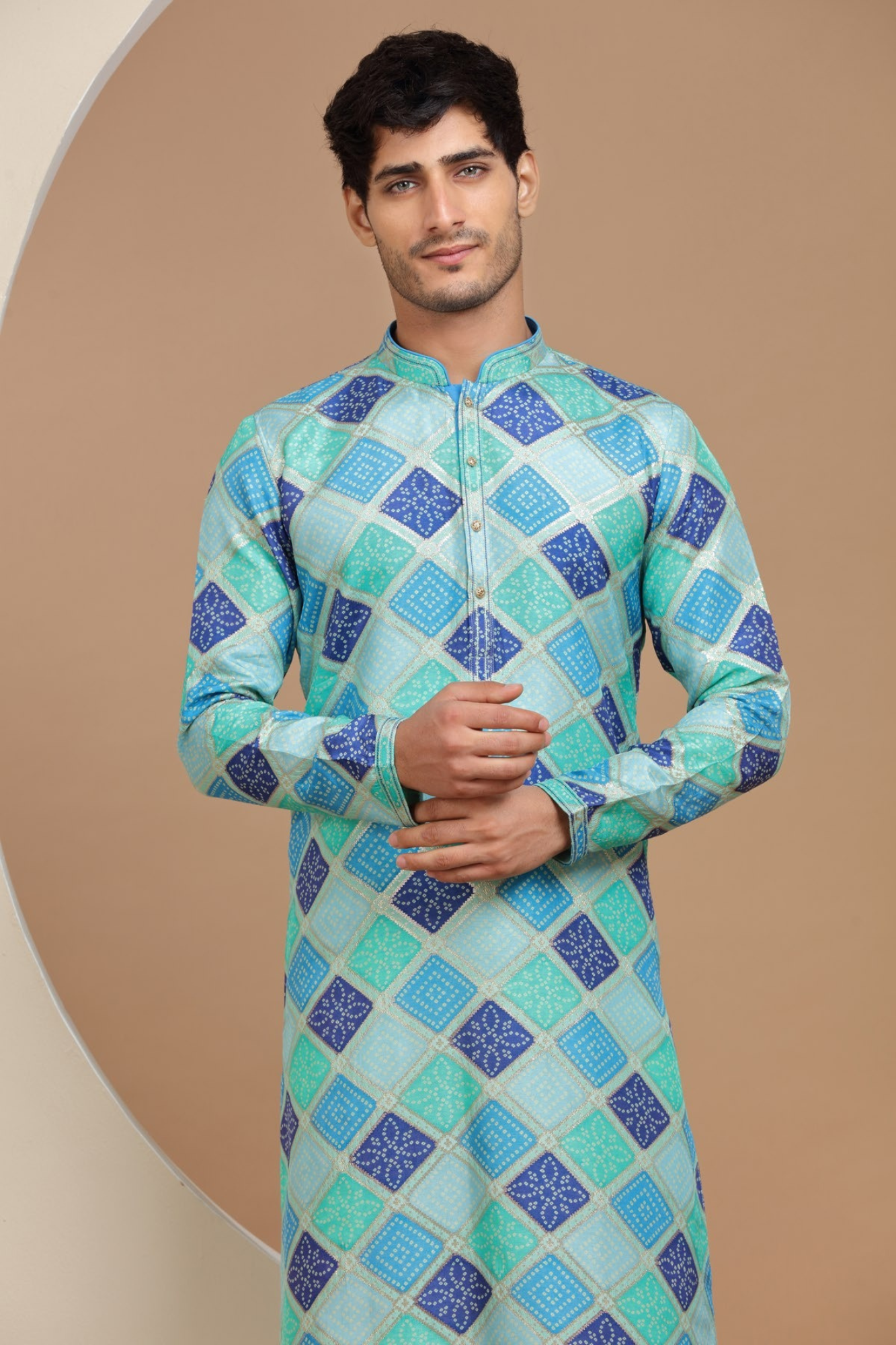 Get ready to turn heads in this Blue Bandhani Kurta Set. Stand out from the crowd with this vibrant, eye-catching design. Perfect for any occasion, this set is bound to make a statement with its unique print. Time to add some flair to your wardrobe!