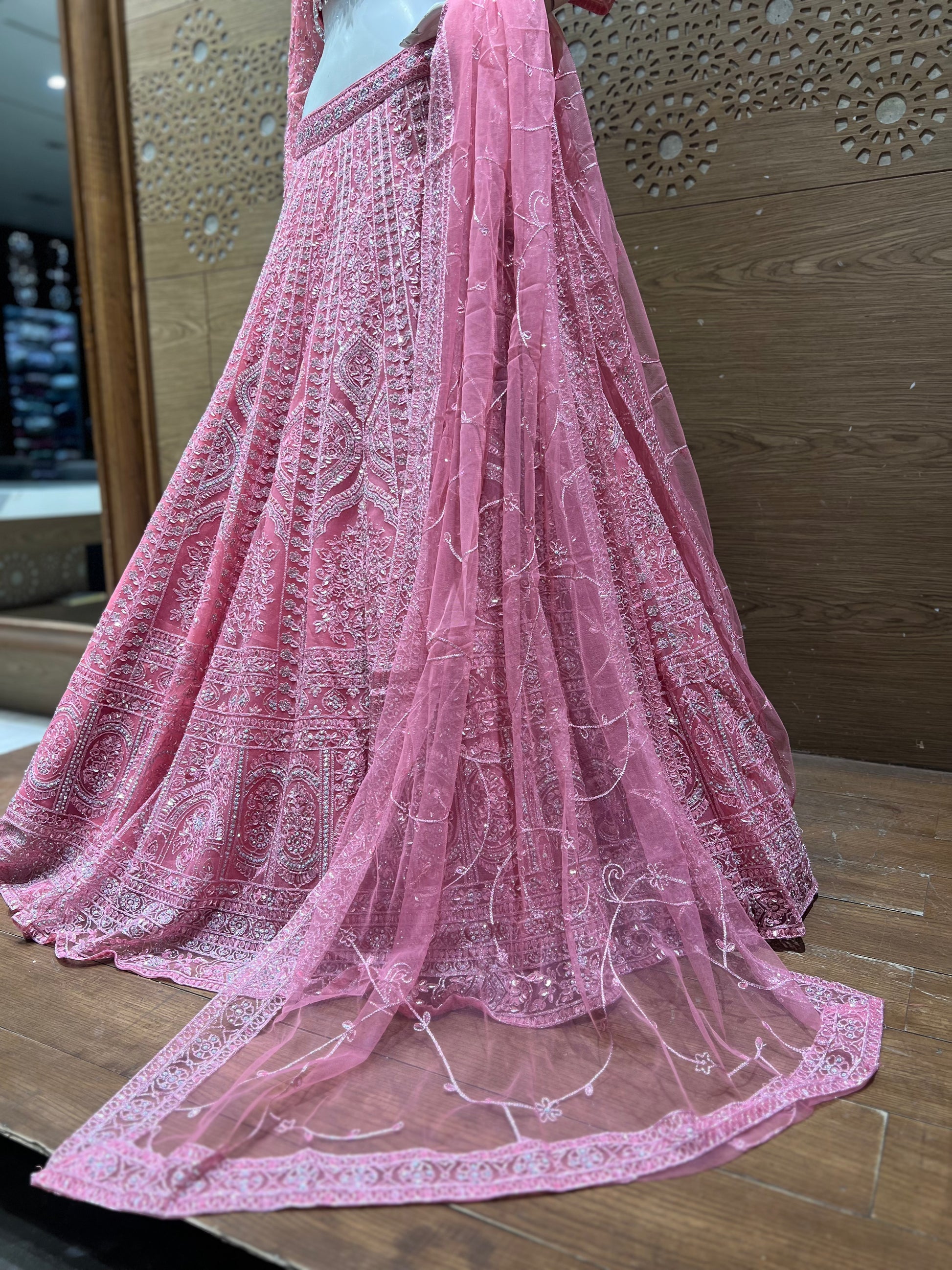 Blush Pink Embroidered Bridal Lehenga with Mirror Work