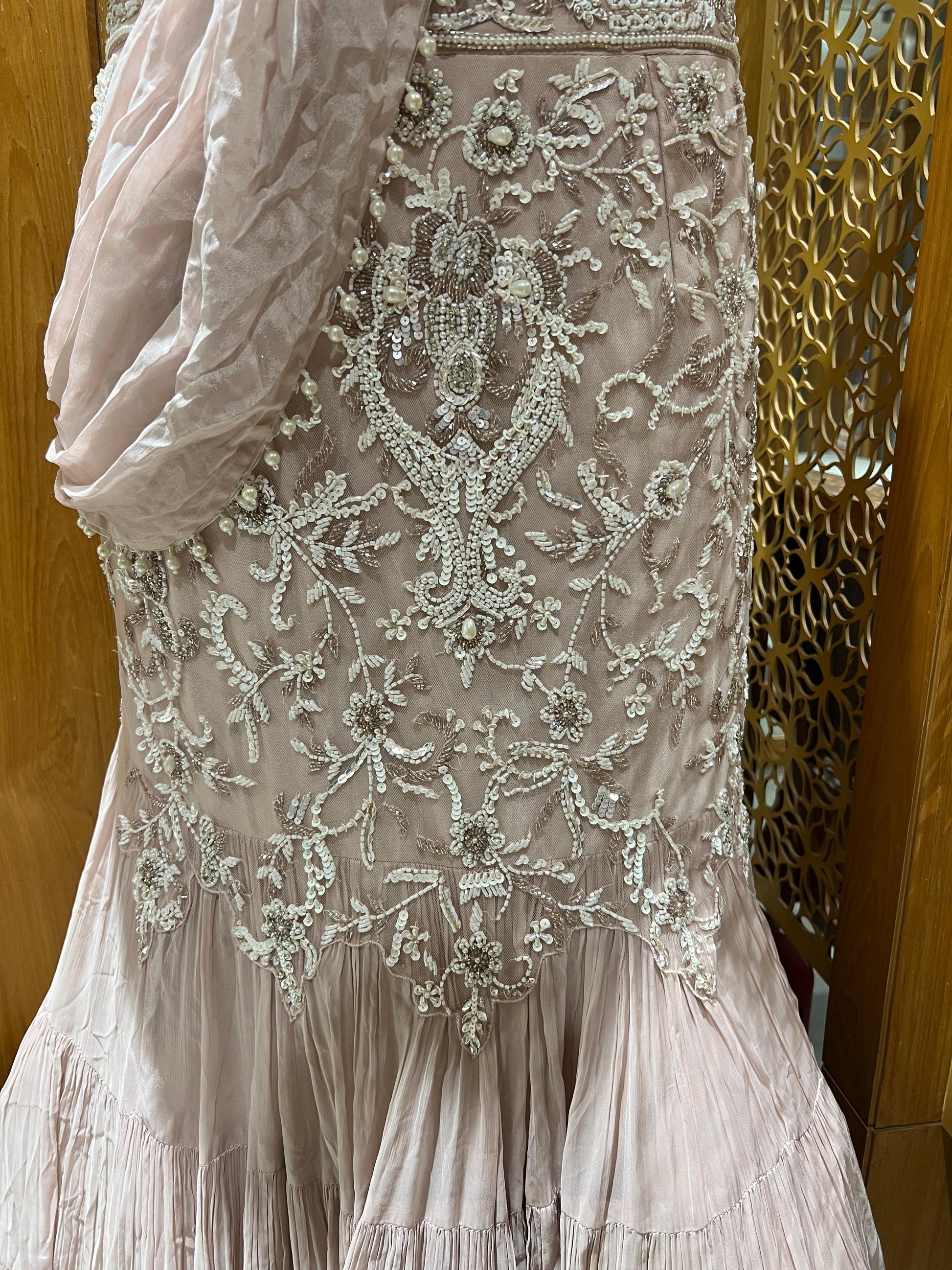 Blush Pink One-Shoulder Embroidered Indo-Western Lehenga Set