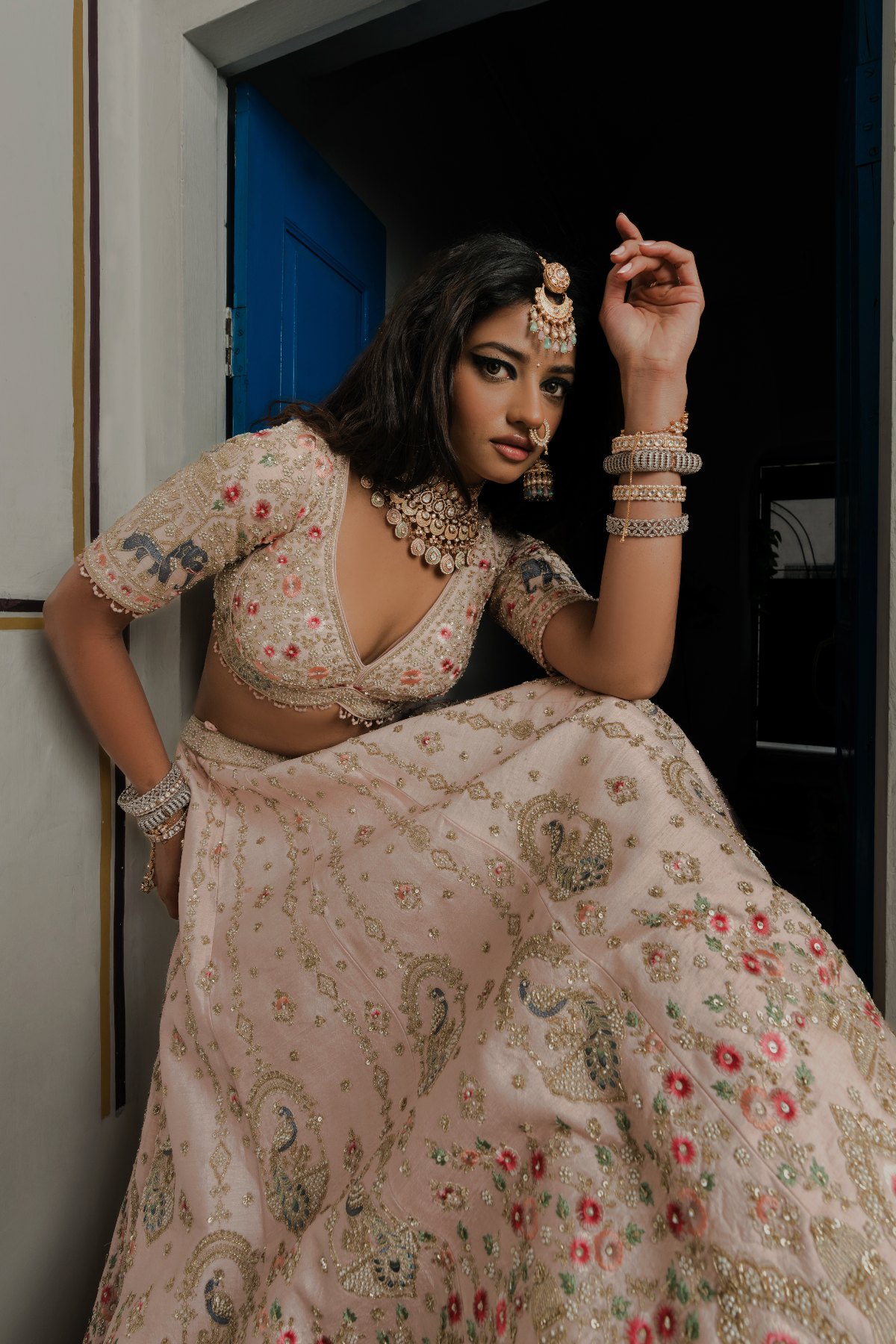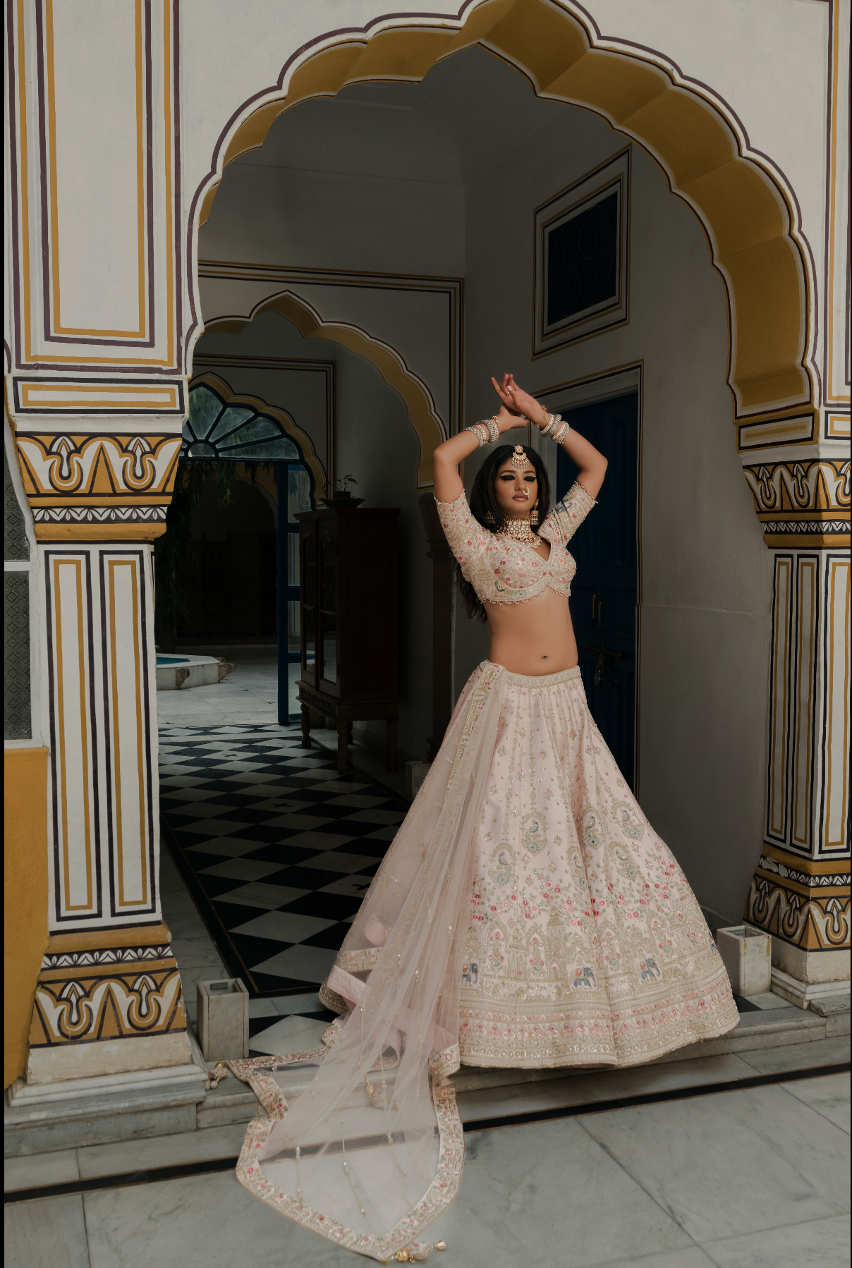 Blush Pink Silk Designer Lehenga with Zari & Resham Embroidery