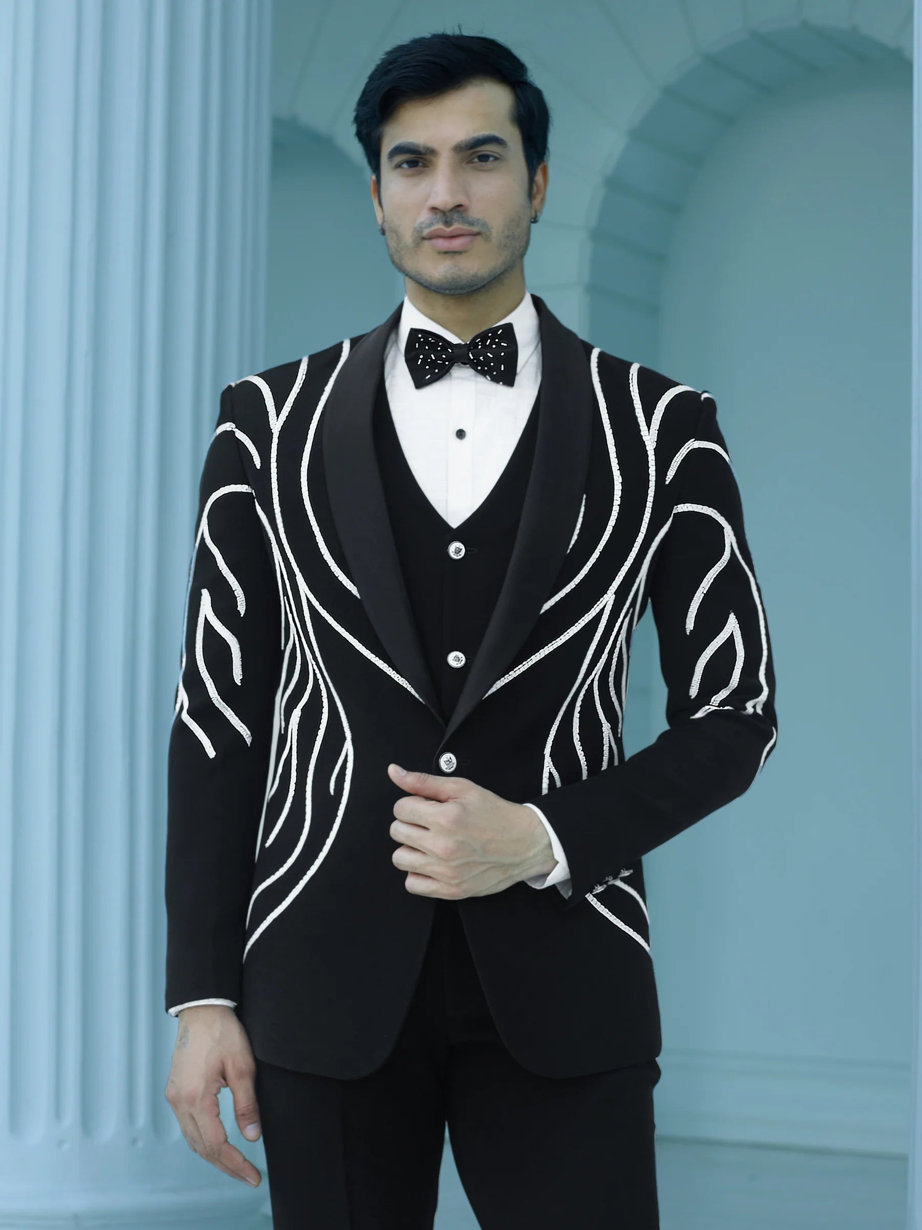 Bold Black Embellished Suit