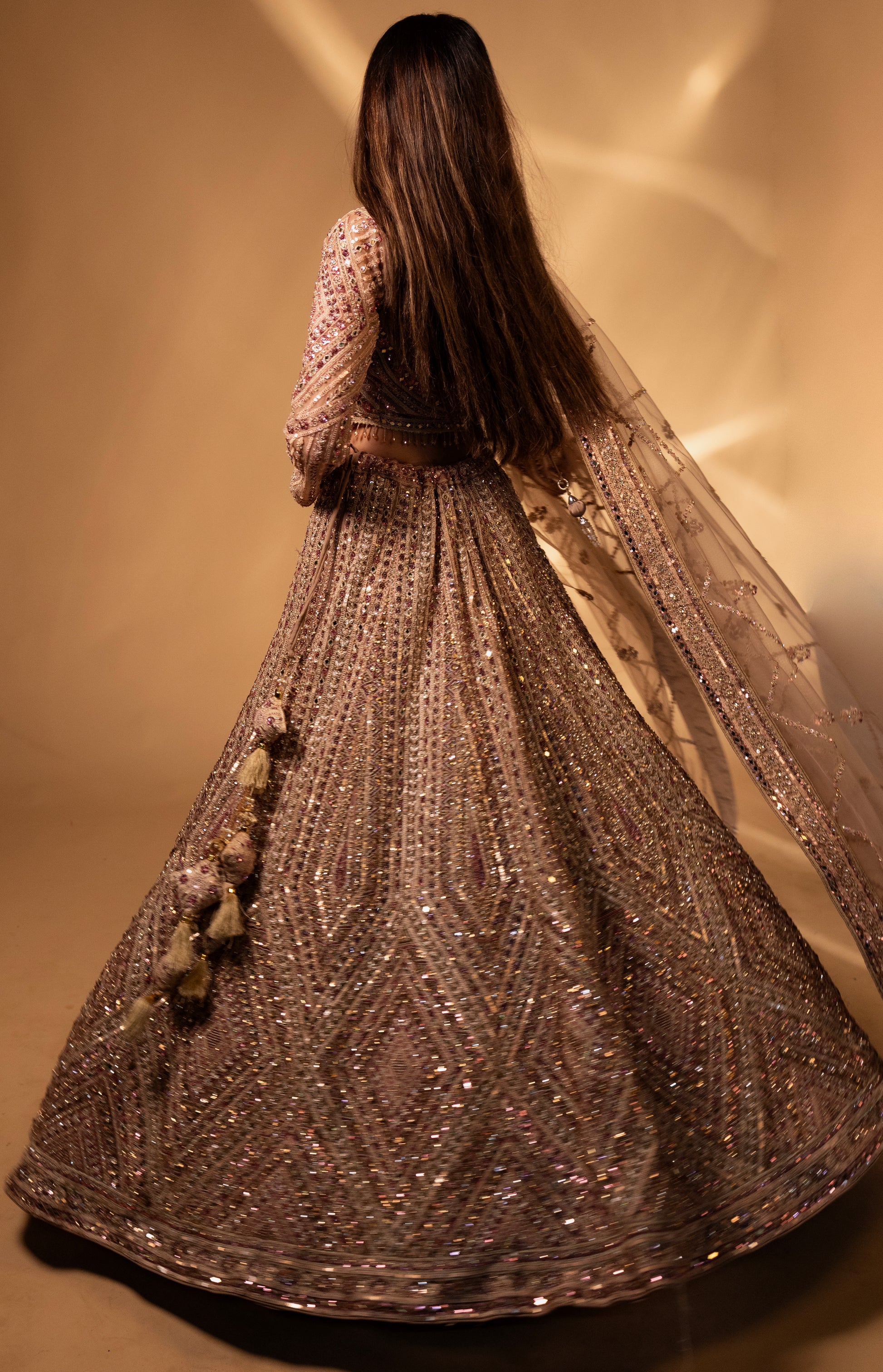 Champagne Gold Mirror-Work Embroidered Bridal Lehenga Choli