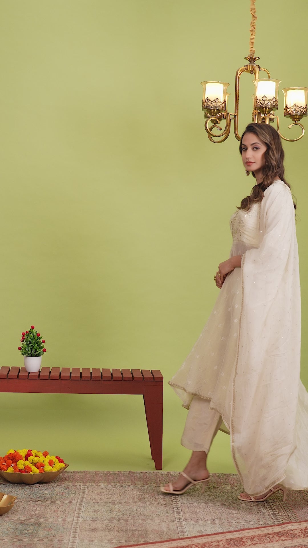 Be the envy of the party with this Cream Flora Sequence Work Anarkali Kurta set. The intricate sequence work and stunning cream color will make you stand out from the crowd. Perfect for any occasion, this set is sure to elevate your style game!