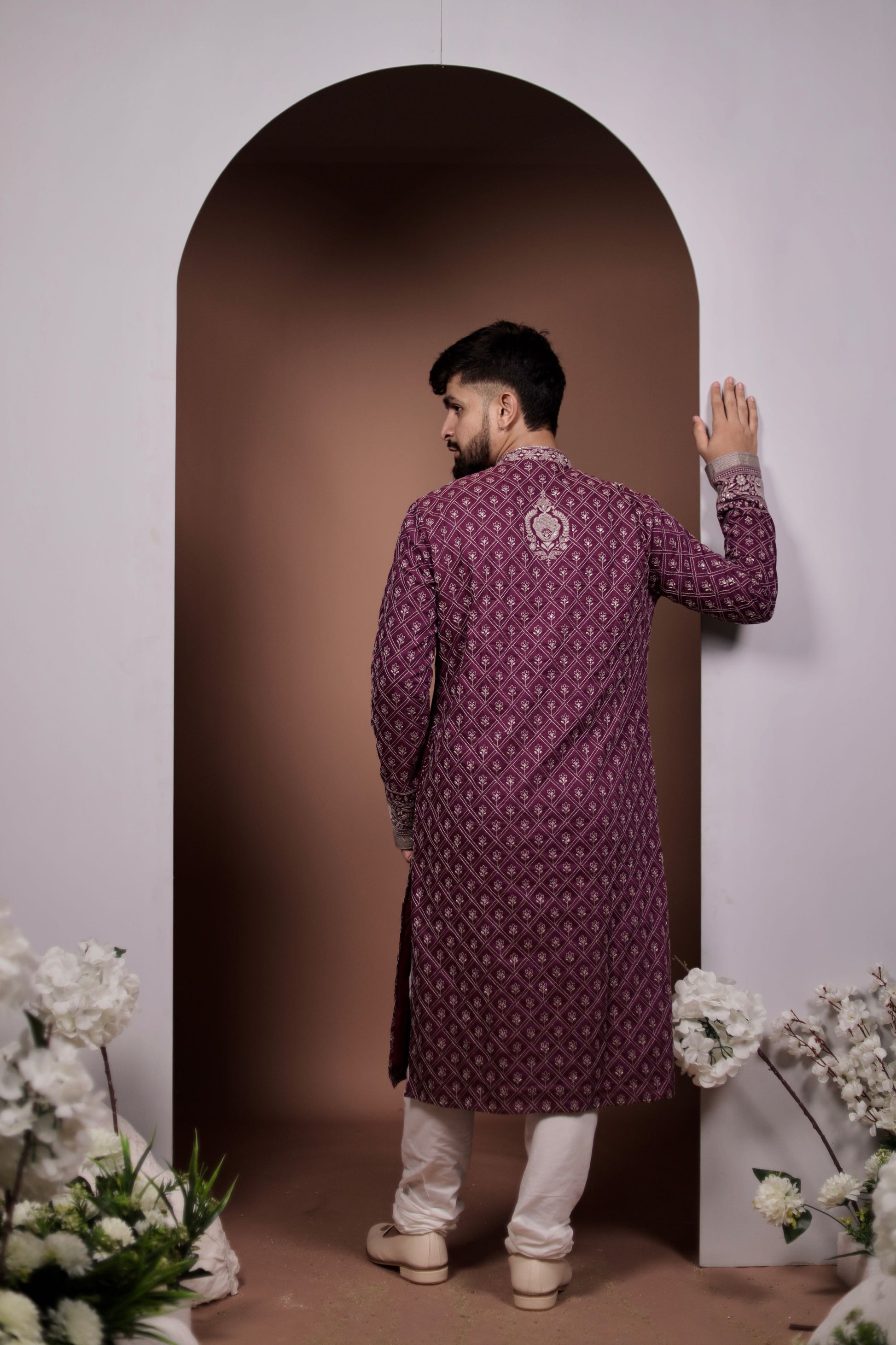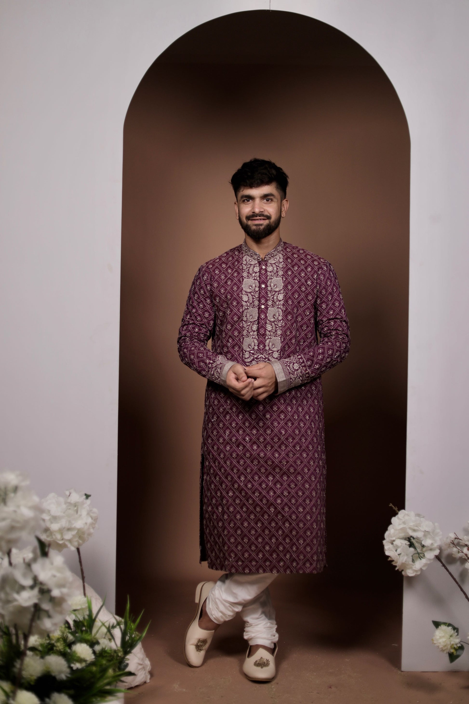 Elevate your wardrobe with this stunning purple kurta, beautifully adorned with intricate white embroidery. The rich, dark hue of the fabric adds a touch of luxury, while the delicate white detailing creates a striking contrast. Perfect for festive occasions or casual gatherings, this kurta combines traditional charm with modern elegance. Experience comfort and style with every wear!