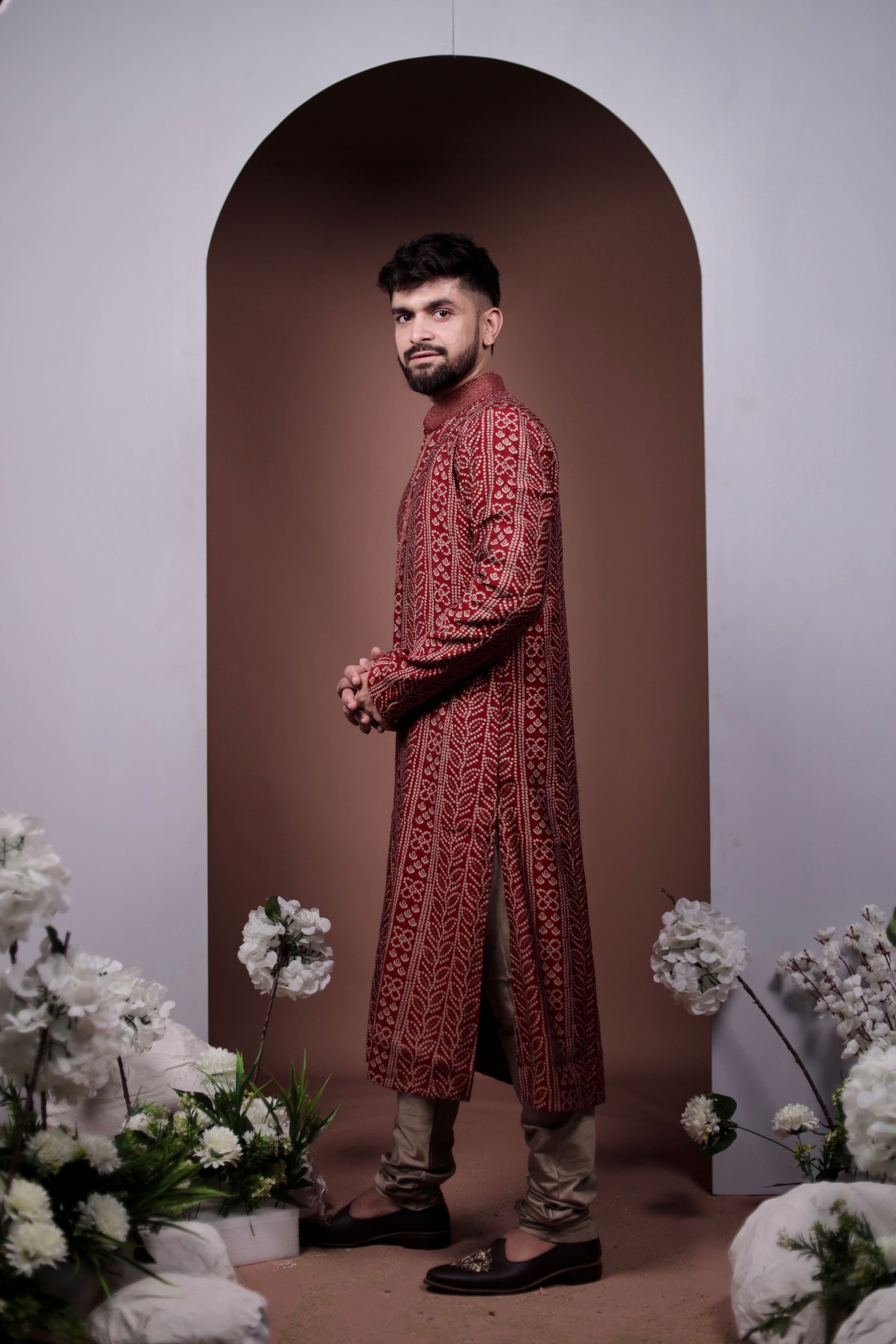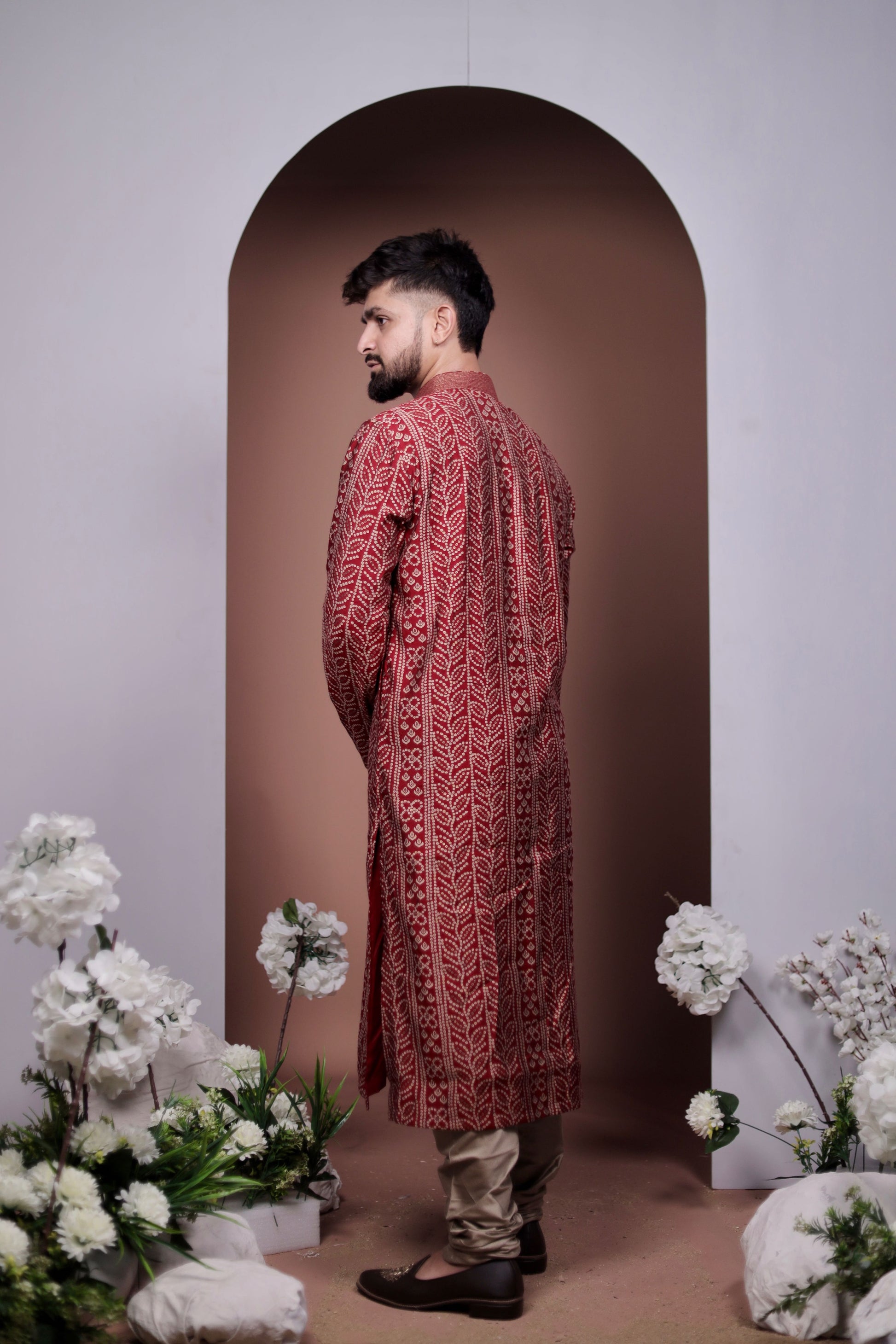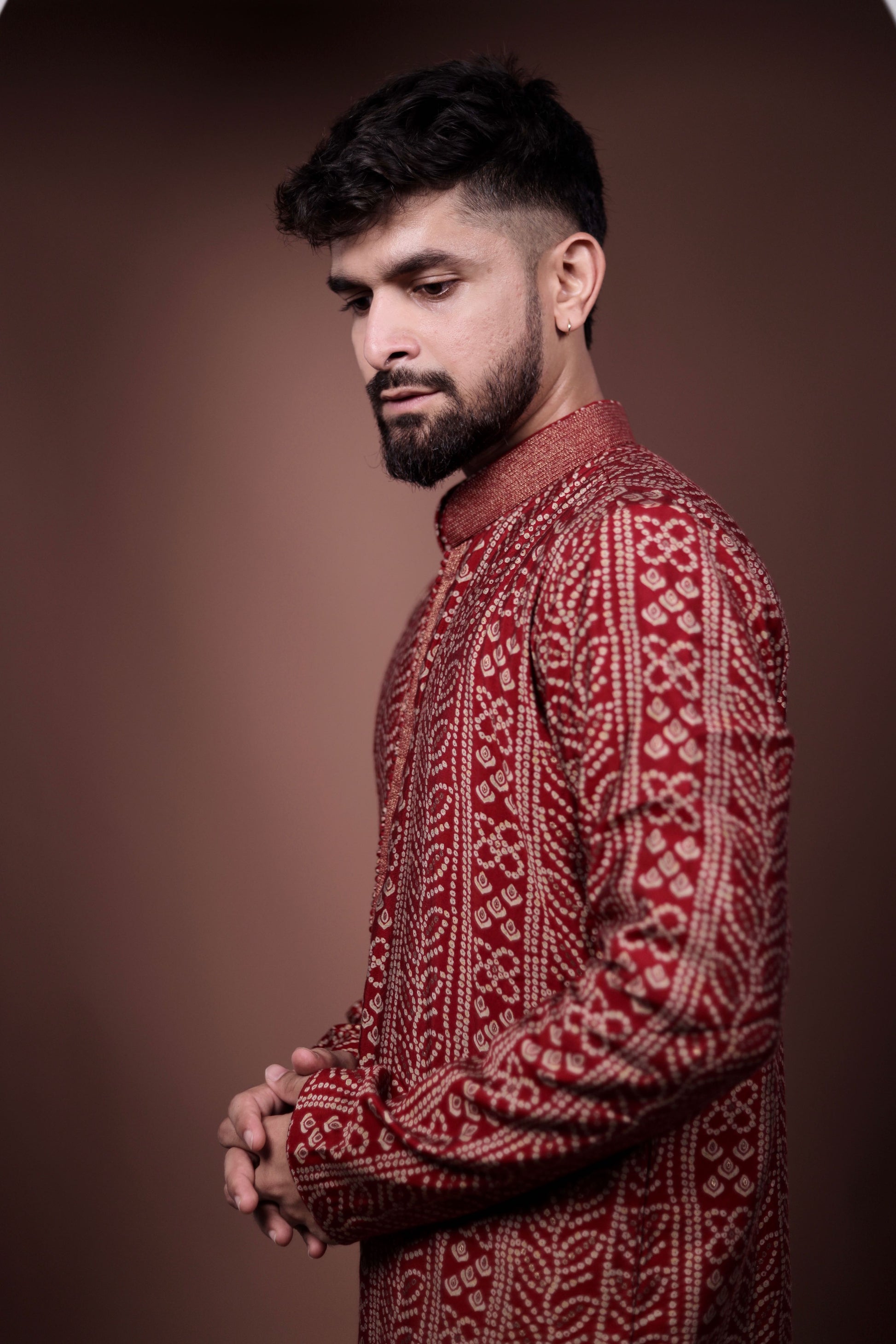 Step into the spotlight with our vibrant red kurta featuring exquisite bandhani work, showcasing the beauty of traditional craftsmanship. This stunning kurta is designed for both comfort and style, making it ideal for festive occasions and celebrations. The intricate bandhani patterns add a unique touch, enhancing the overall elegance of the outfit. Paired with a matching pajama, this ensemble offers a perfectly coordinated look that is sure to impress. Made from high-quality fabric, it ensures a relaxed fit while keeping you stylish. Celebrate your love for tradition and color with this captivating red kurta set!