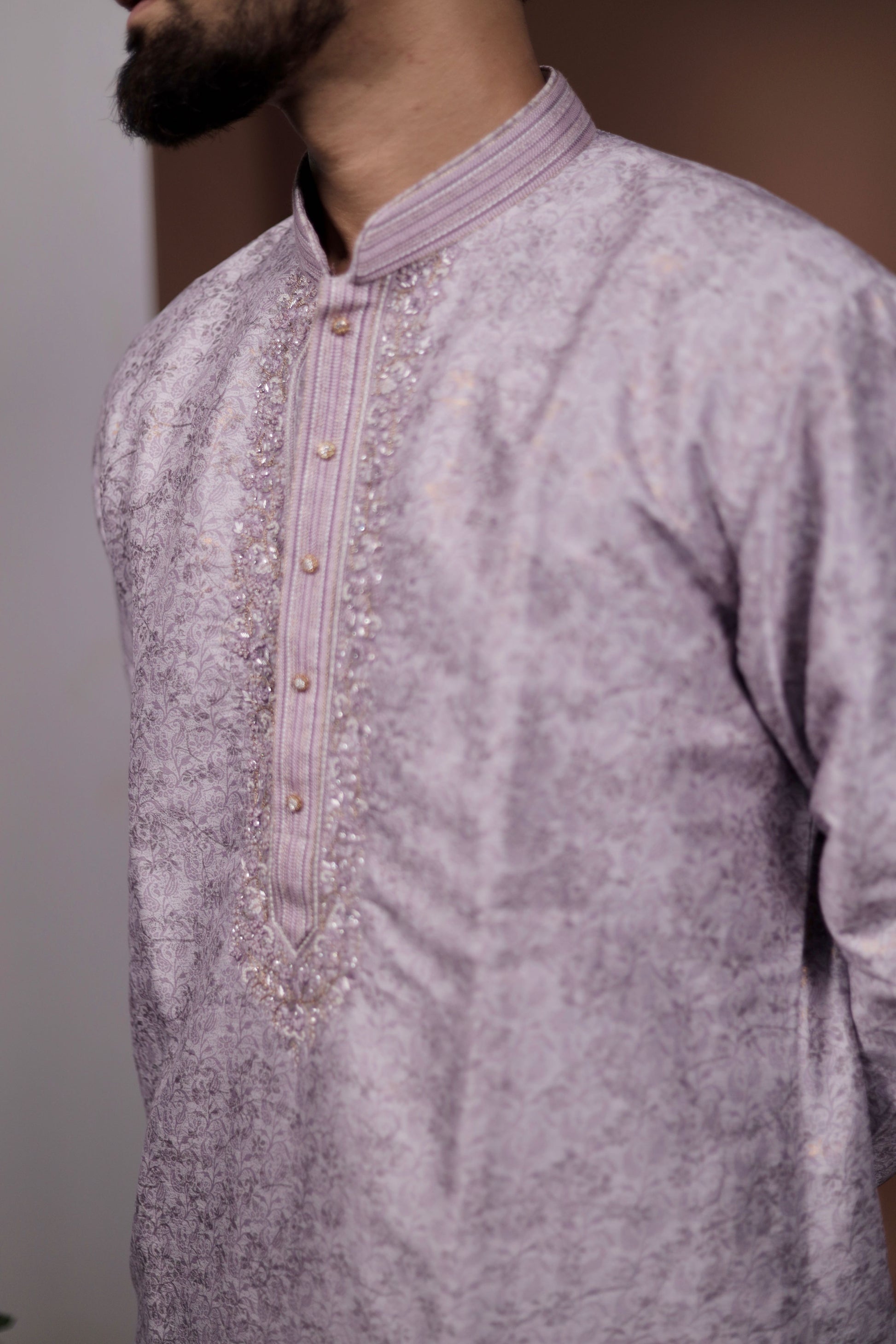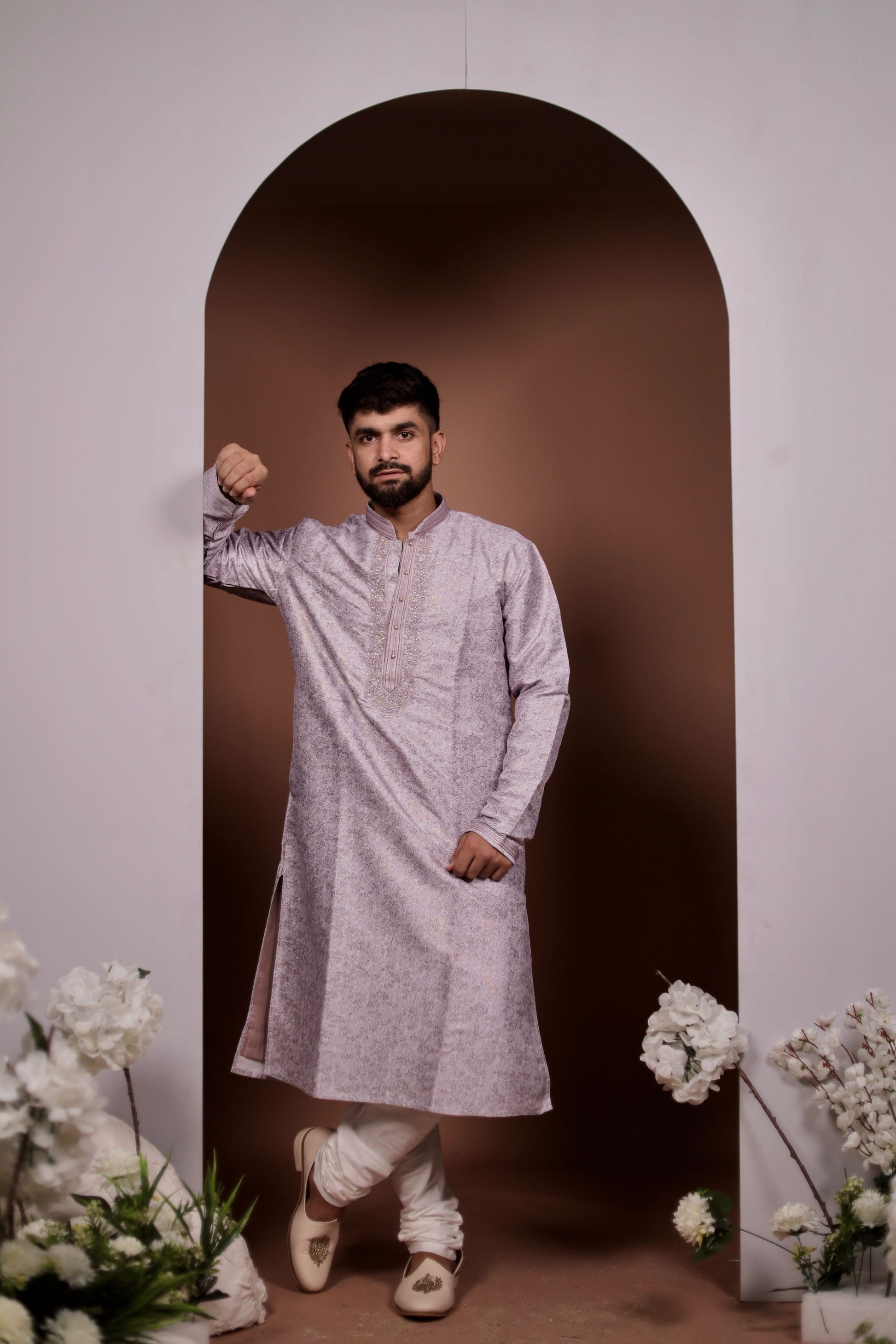 Step into elegance with the Ethereal Elegance: Pink Swan Kurta Set! This stunning kurta features intricate jardoshi work in a soft pink hue, perfect for any occasion. Paired with a matching pajama, this set combines comfort and style effortlessly. Make a statement and embrace your inner grace with this enchanting ensemble!