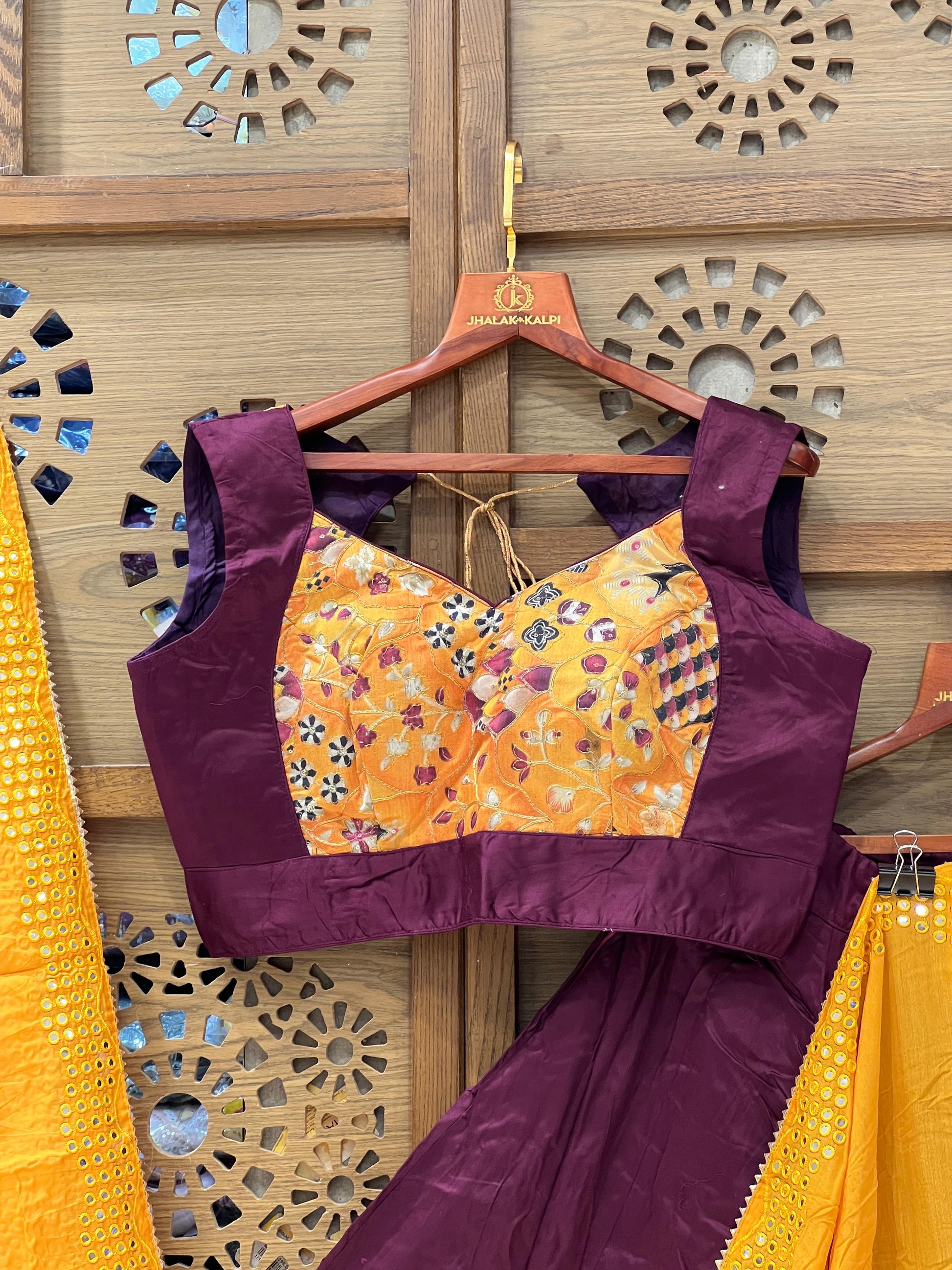 Festive Maroon & Mustard Embroidered Chaniya Choli