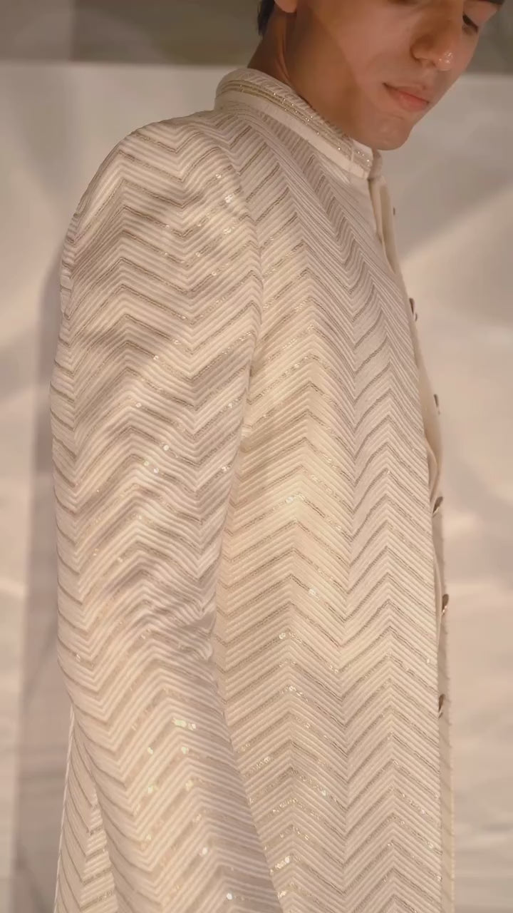 Pearl White Achkan-Style Indo-Western Set