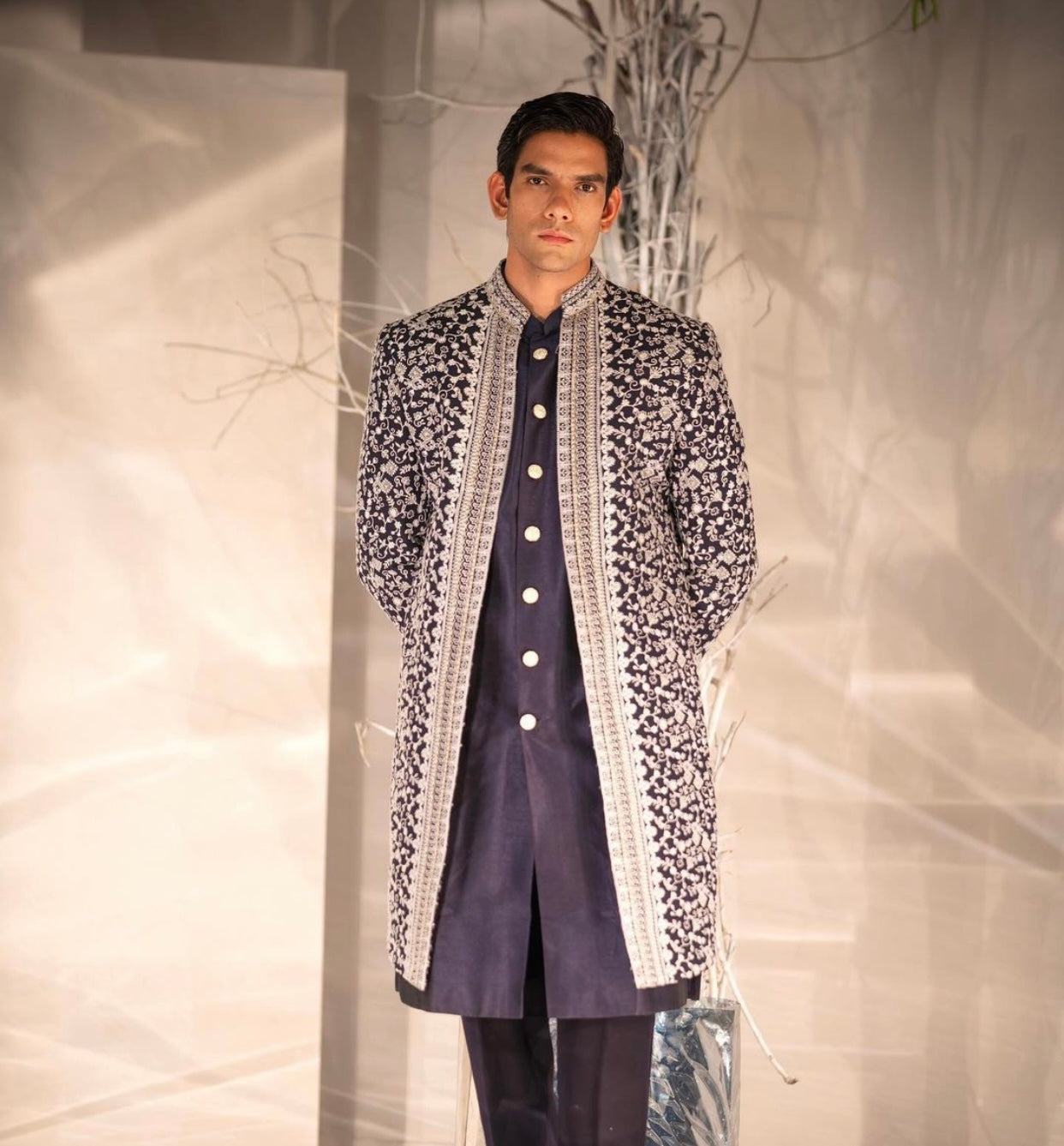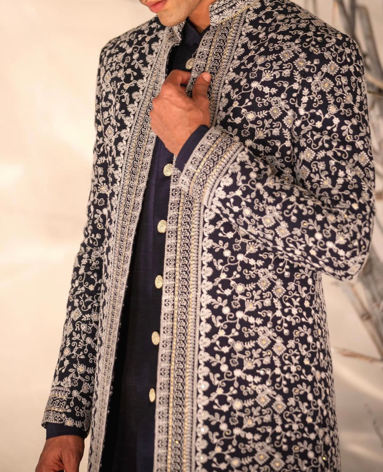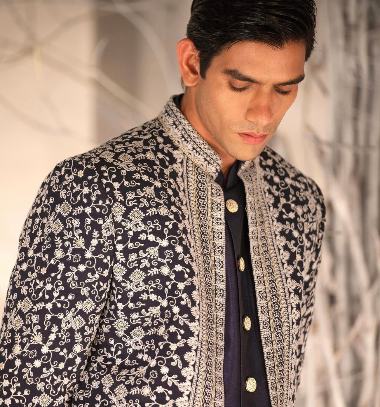 This collection shines with the sheer beauty of handcrafted tonal embroidery, featuring captivating navy blue attire paired with impeccably tailored bottoms. Each piece is a masterpiece, meticulously crafted to perfection. Perfect for those who appreciate exquisite craftsmanship and timeless elegance, this collection is sure to make a statement at any event or occasion.