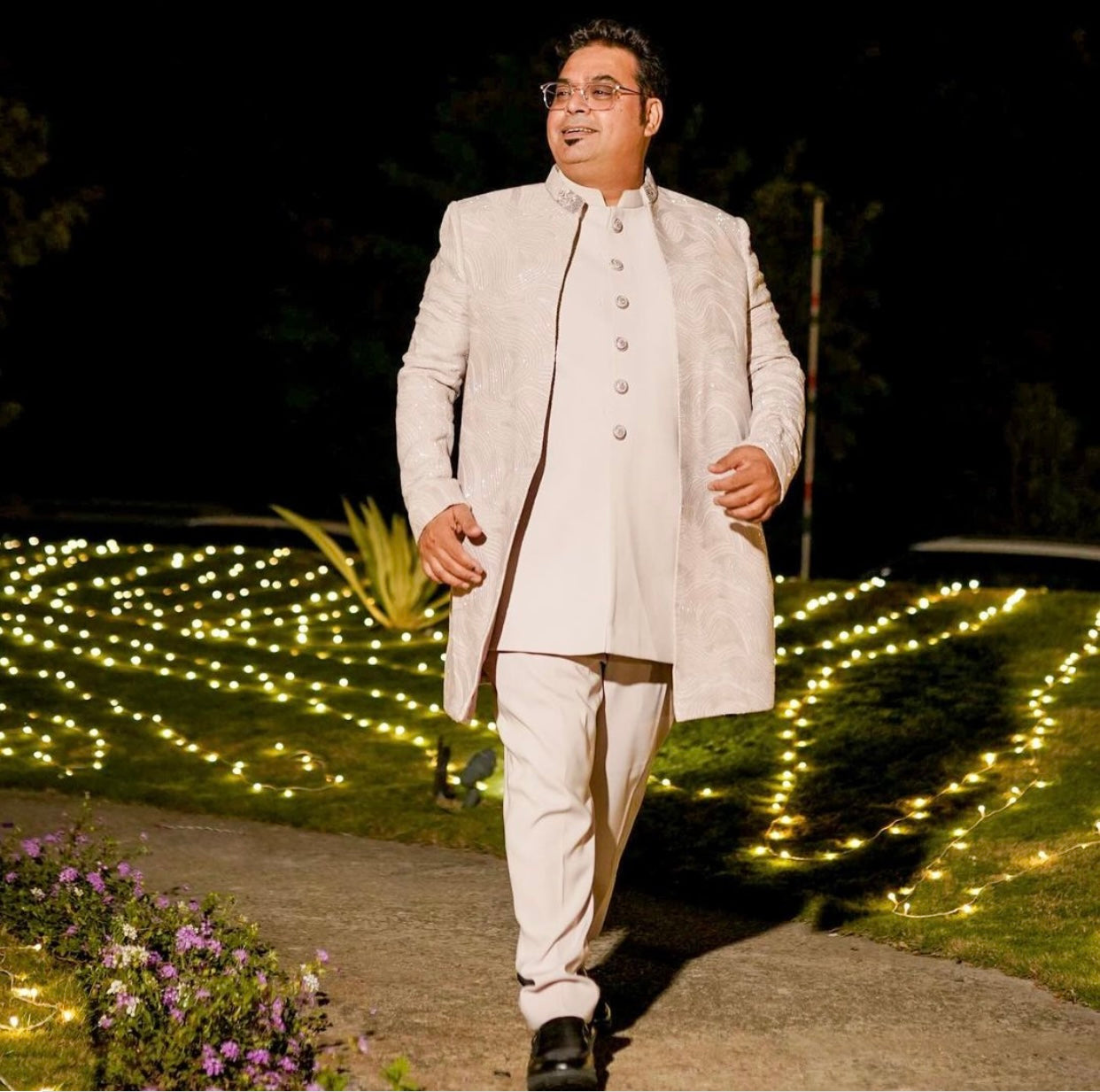 Step into elegance with this cream indowestern suit set for men. Adorned with delicate floral embroidery, the kurta exudes timeless charm, perfectly paired with tailored trousers for a sophisticated look. Ideal for weddings and special occasions, this ensemble seamlessly merges traditional craftsmanship with modern style.