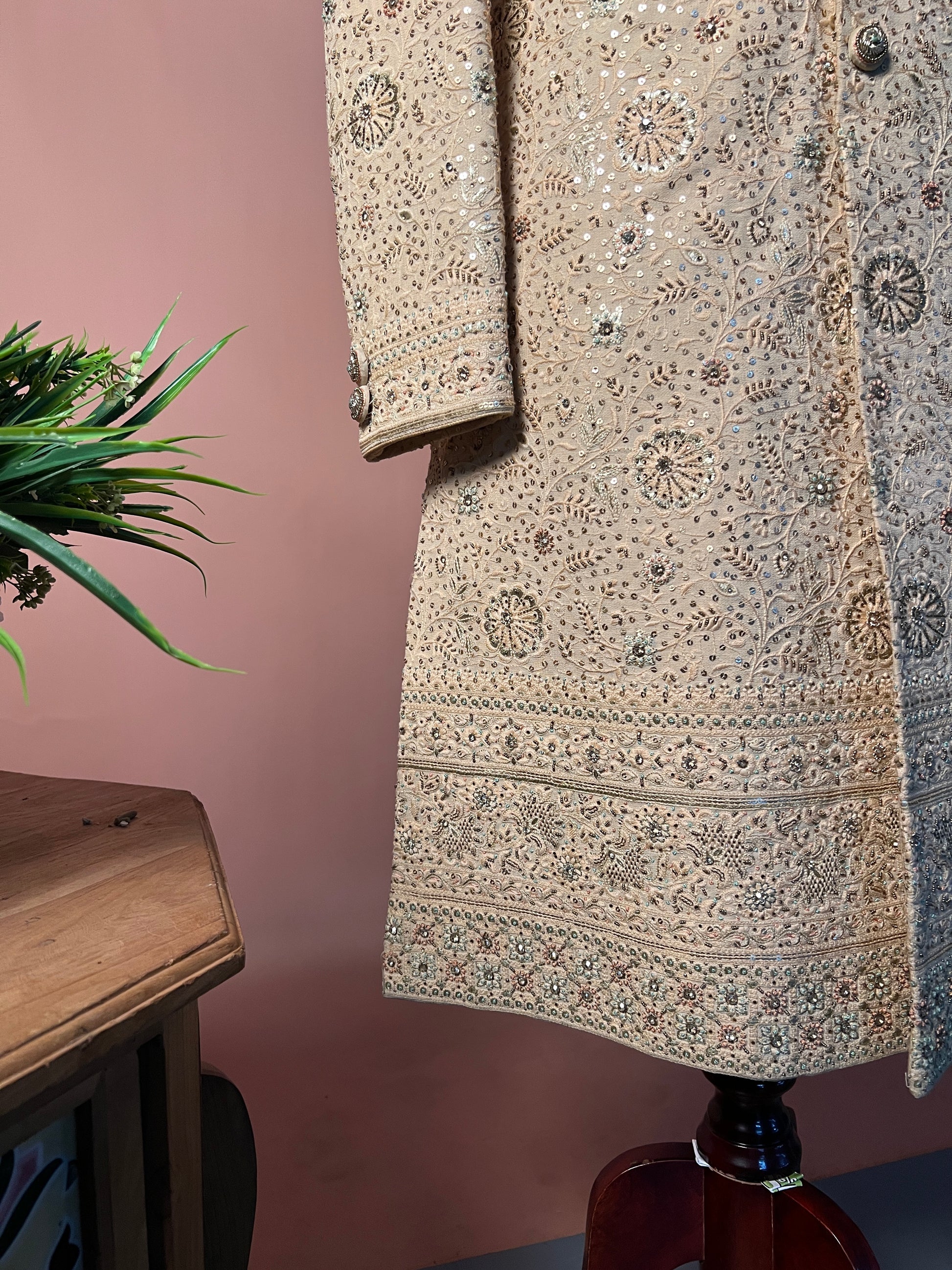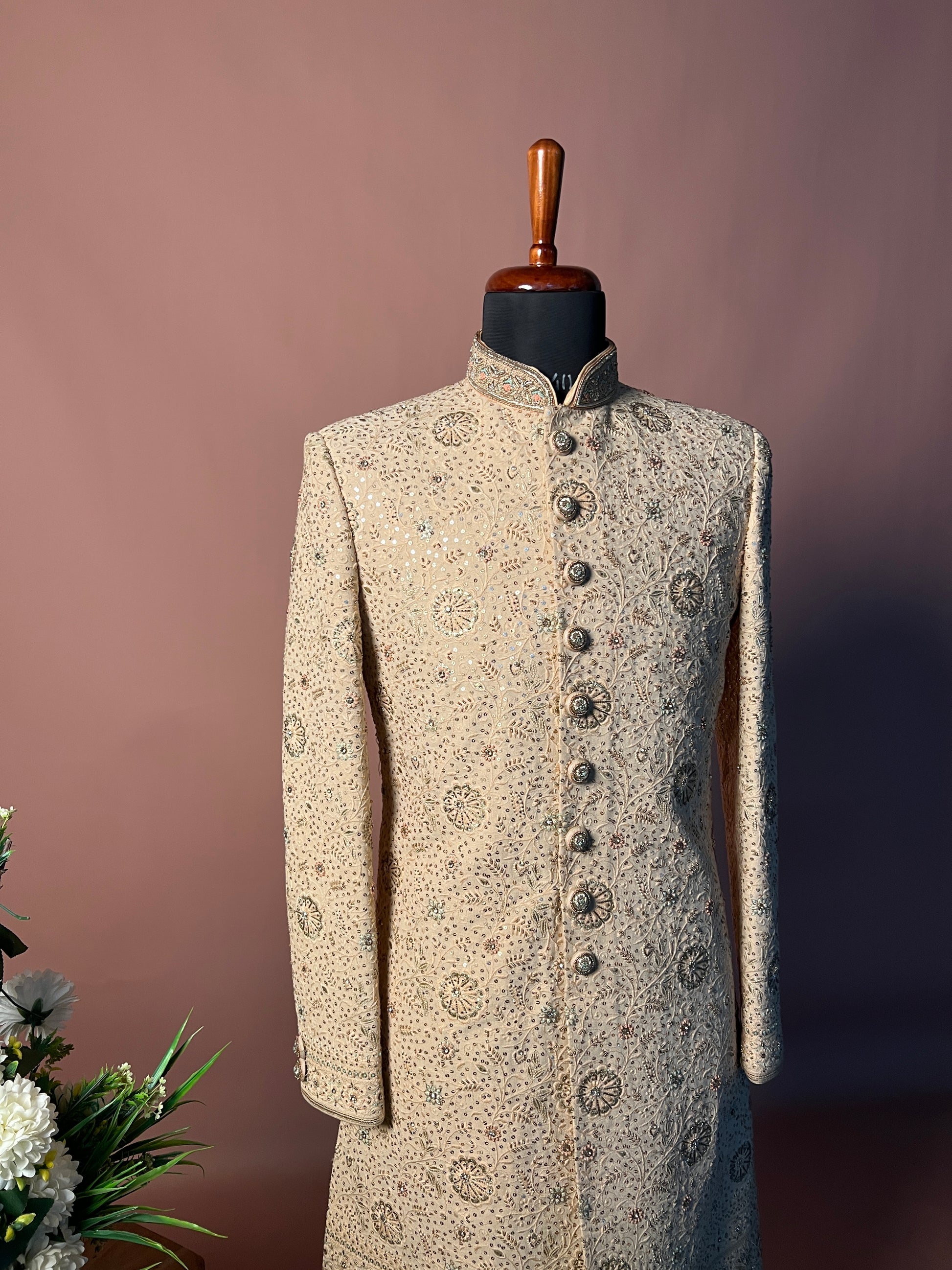 Ivory Mirror & Zari Embroidered Royal Sherwani