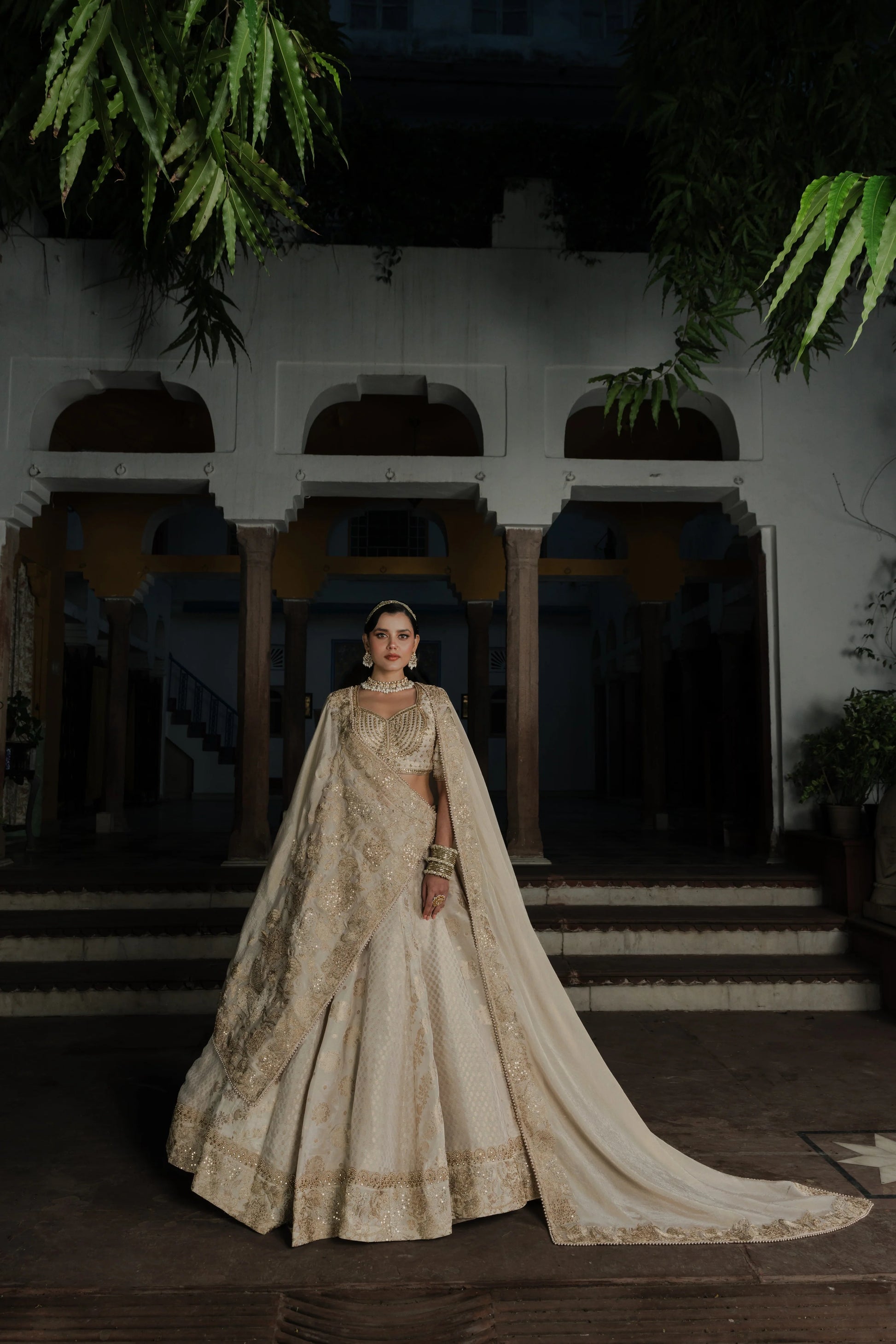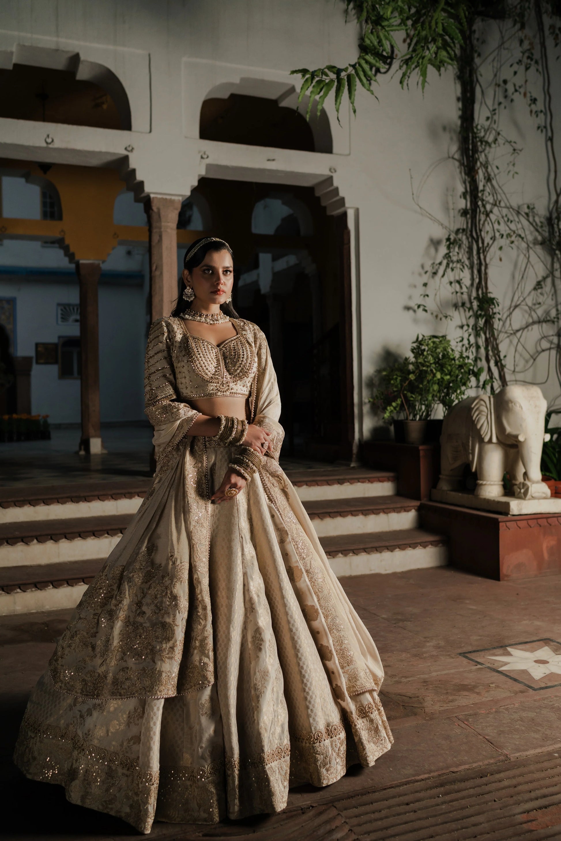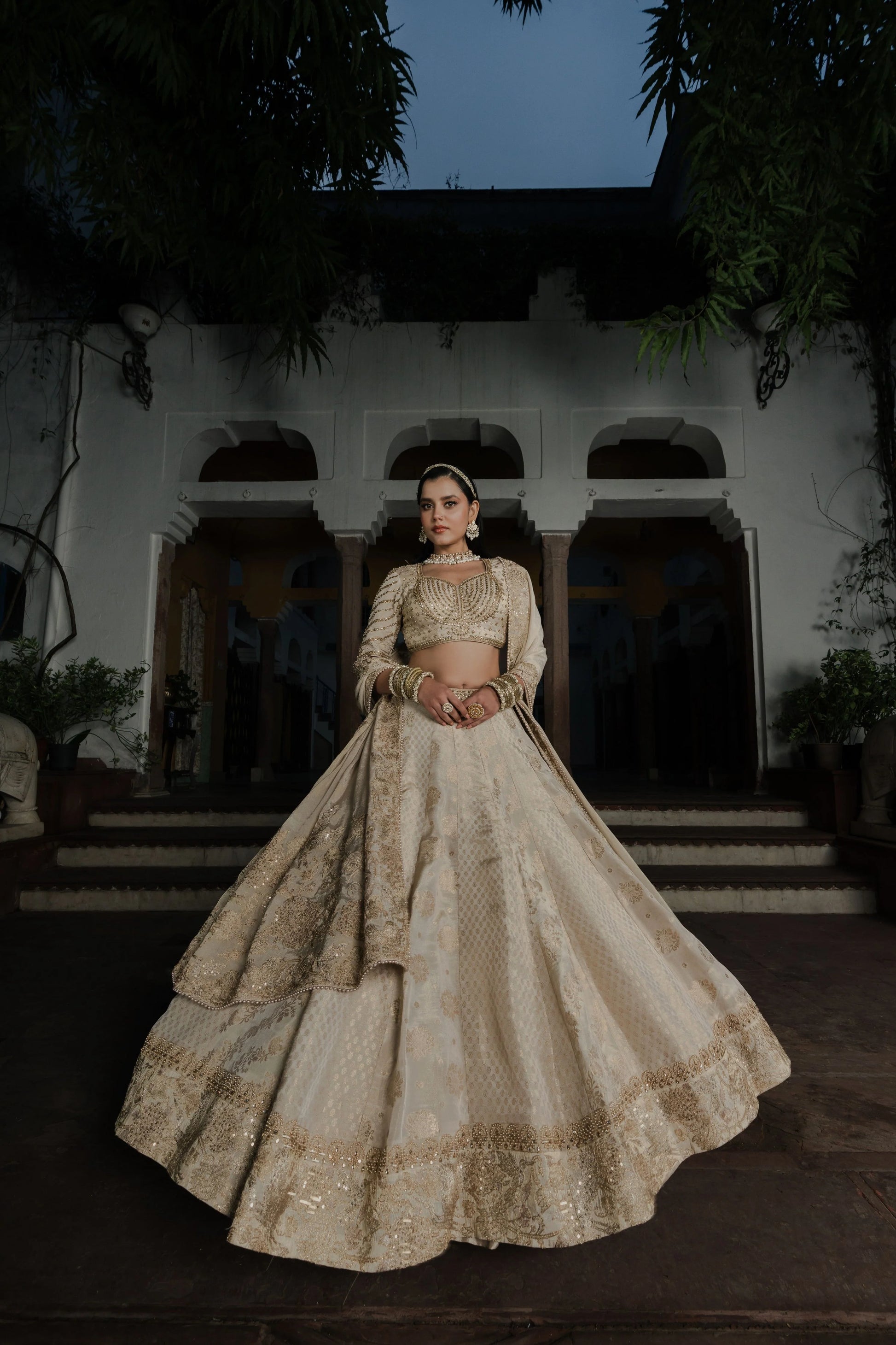 Ivory Silk Lehenga with Zardosi & Sequin Embroidery