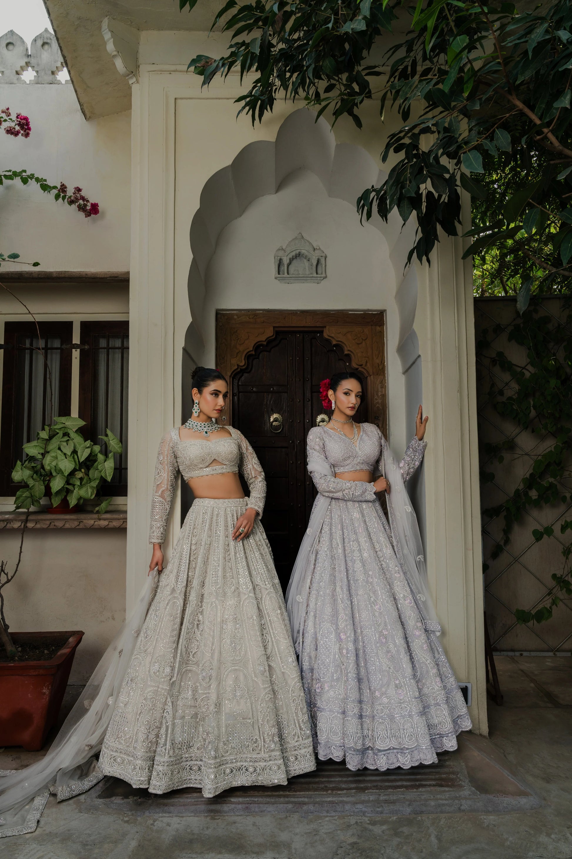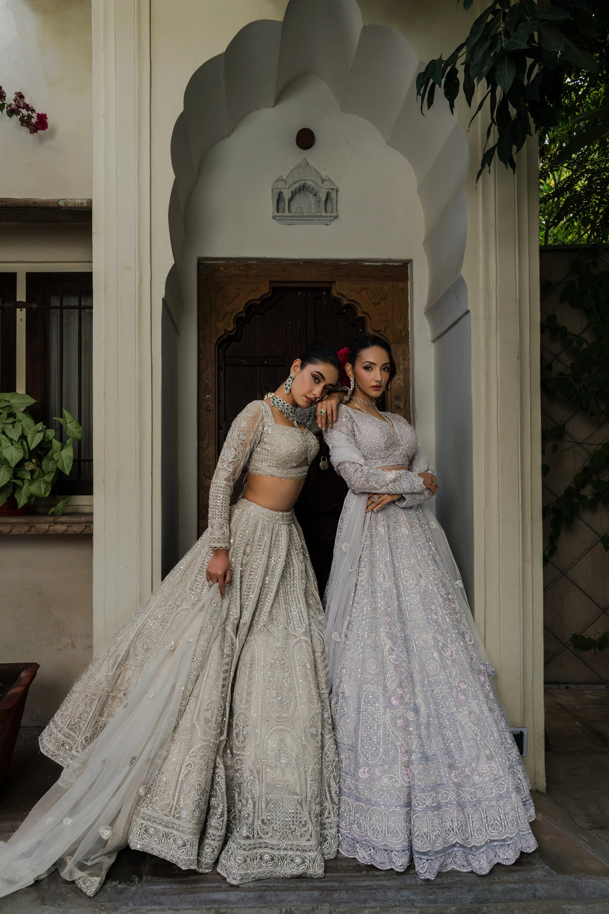 The blouse, tailored with full sleeves and a deep neckline, continues the ornate embroidery for a seamless, elegant look. Paired with a sheer net dupatta edged with embroidered borders, it adds just the right amount of softness and grace.