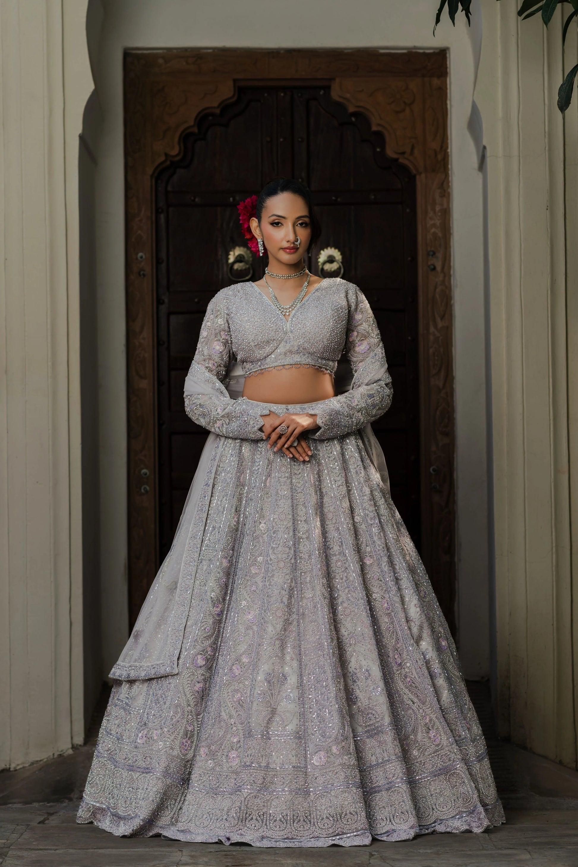 Perfect for twilight celebrations and receptions, this lavender lehenga is a timeless pick for those who appreciate understated opulence.