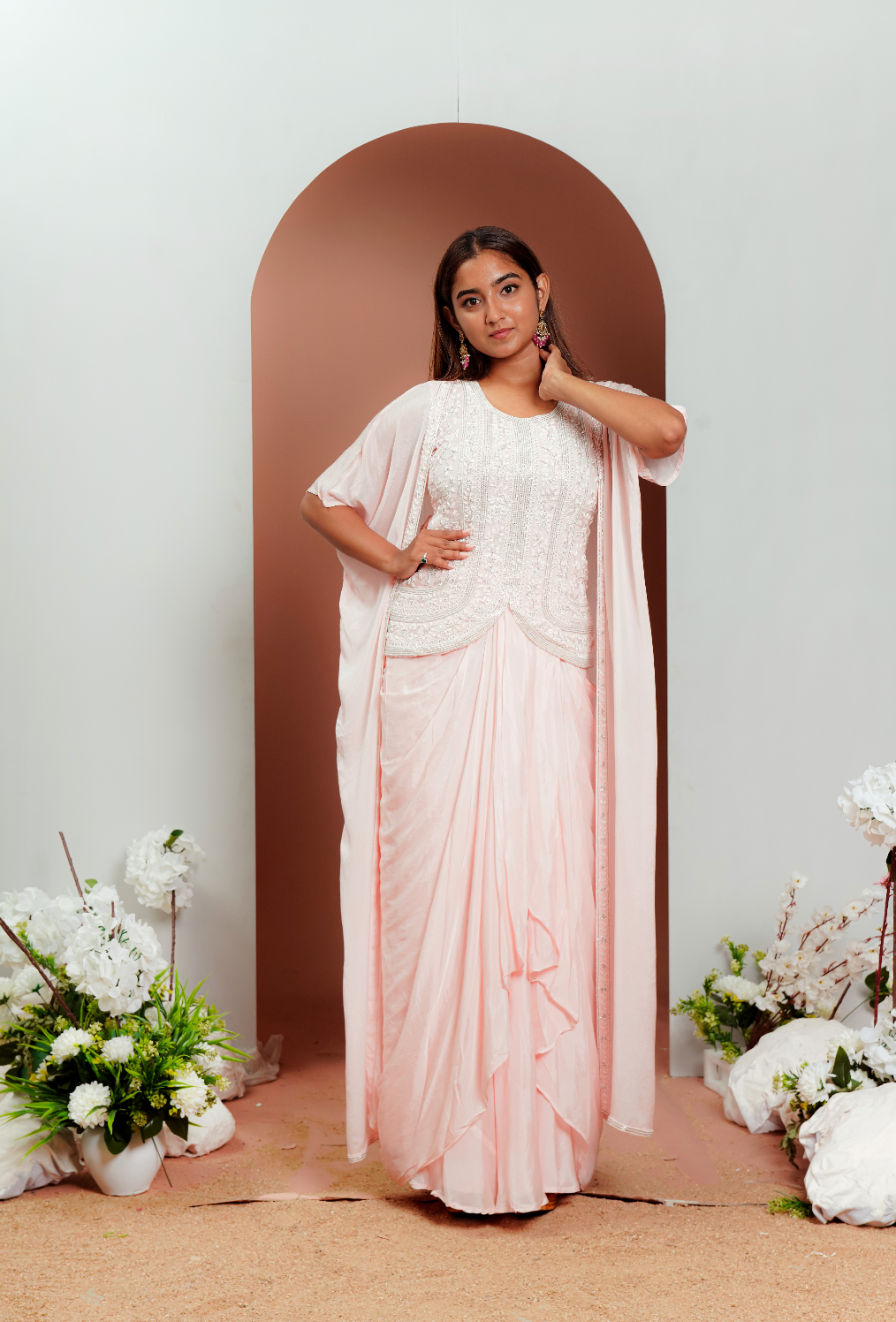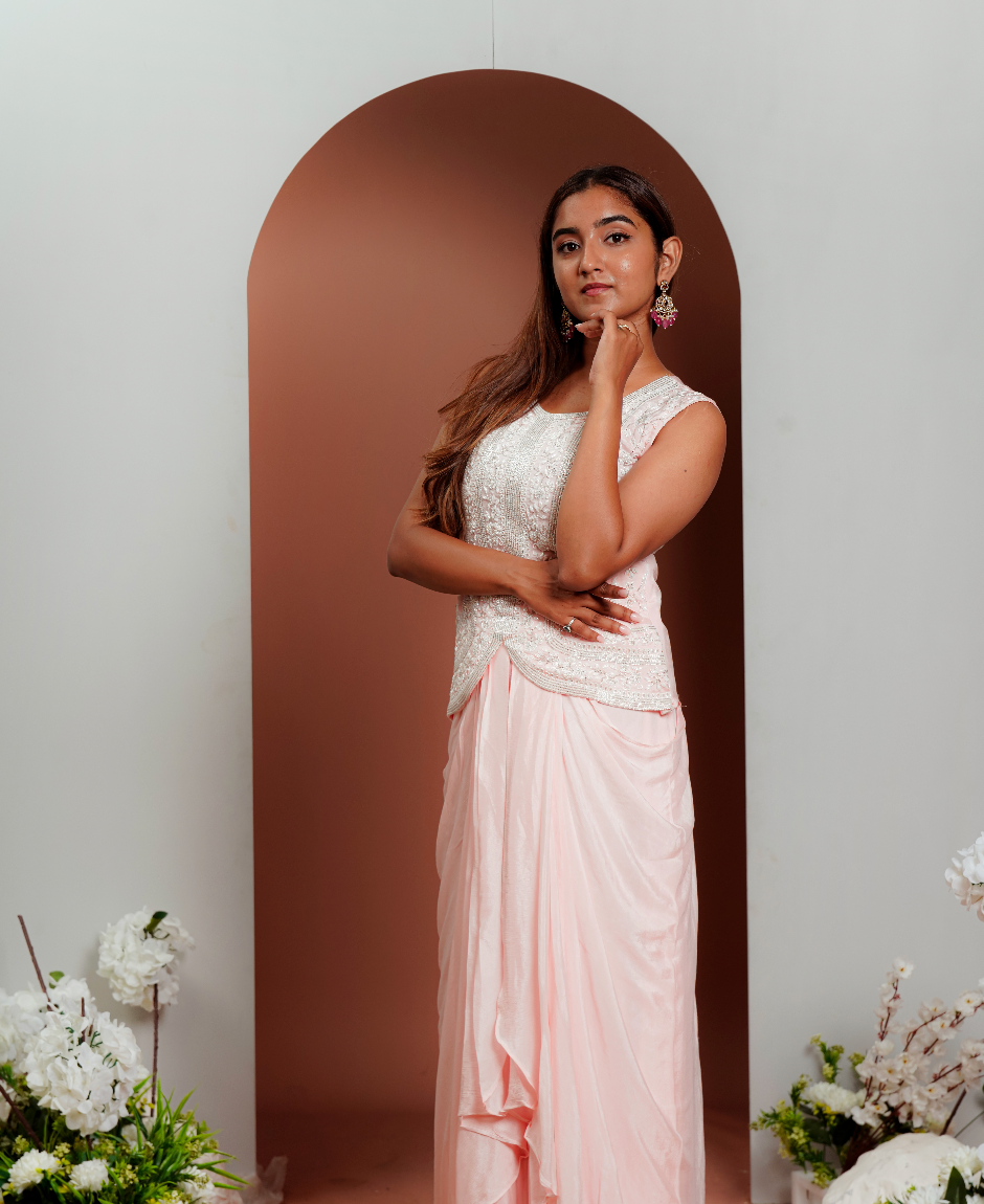 Step into the spotlight with our stunning Light Pink Shimmer Lehenga Set, designed for the modern diva who loves to shine. This exquisite ensemble features a beautifully crafted lehenga that shimmers elegantly in the light, making it perfect for special occasions and celebrations.