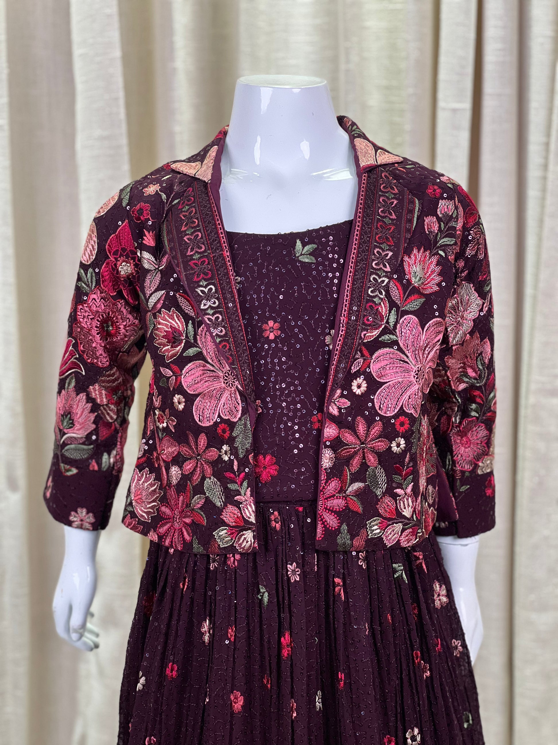 Maroon Embroidered Anarkali Gown with Floral Jacket