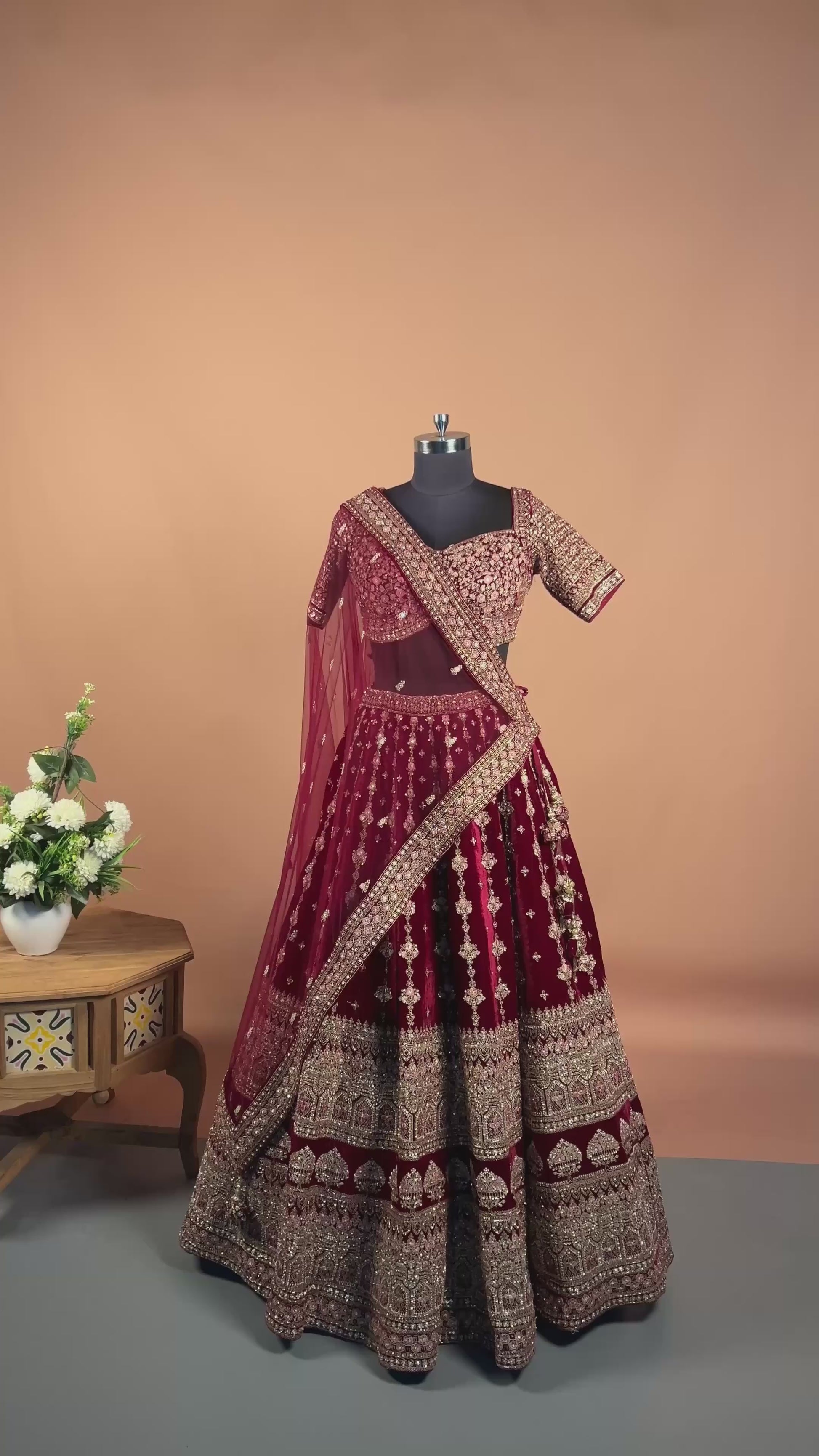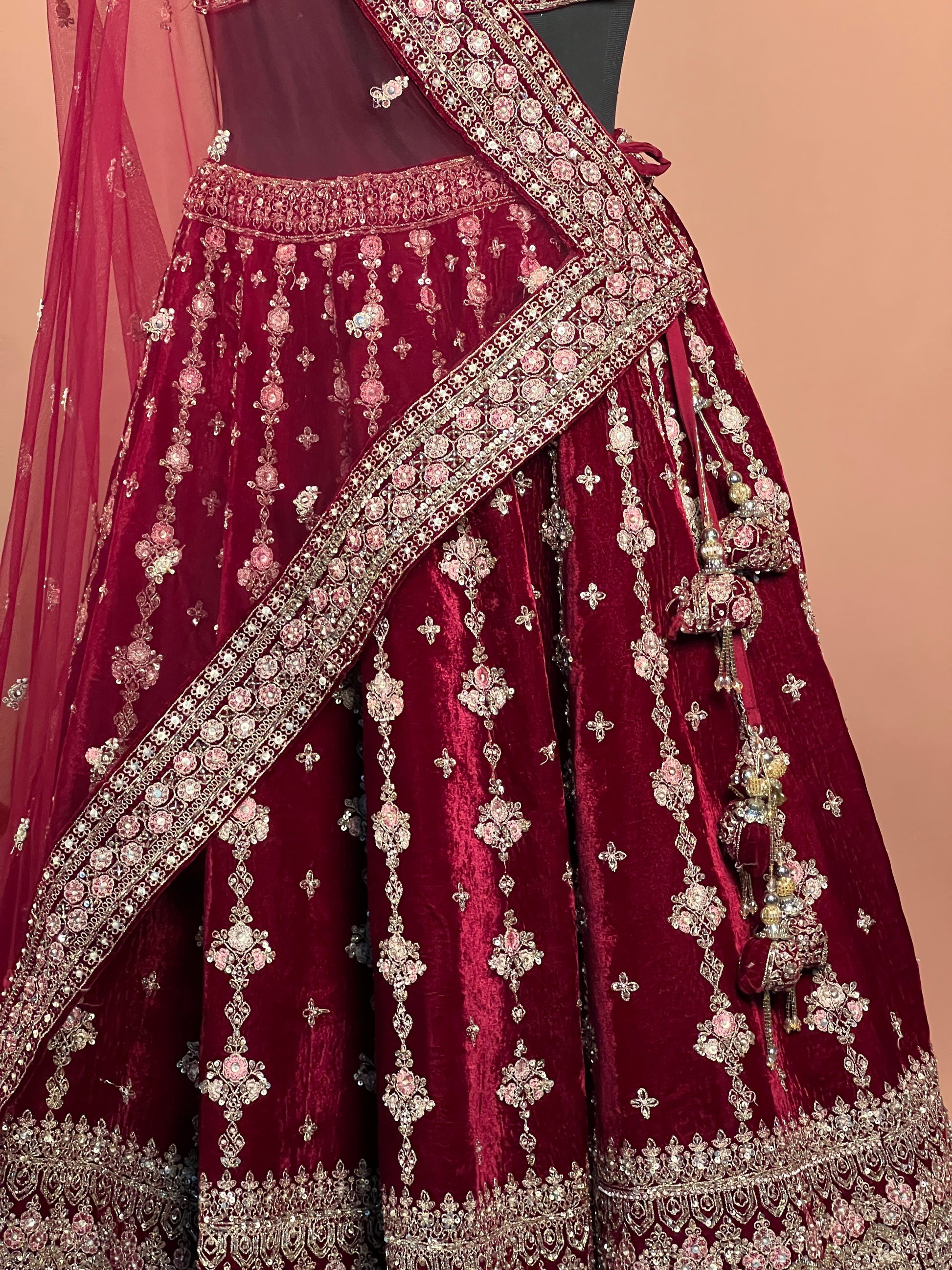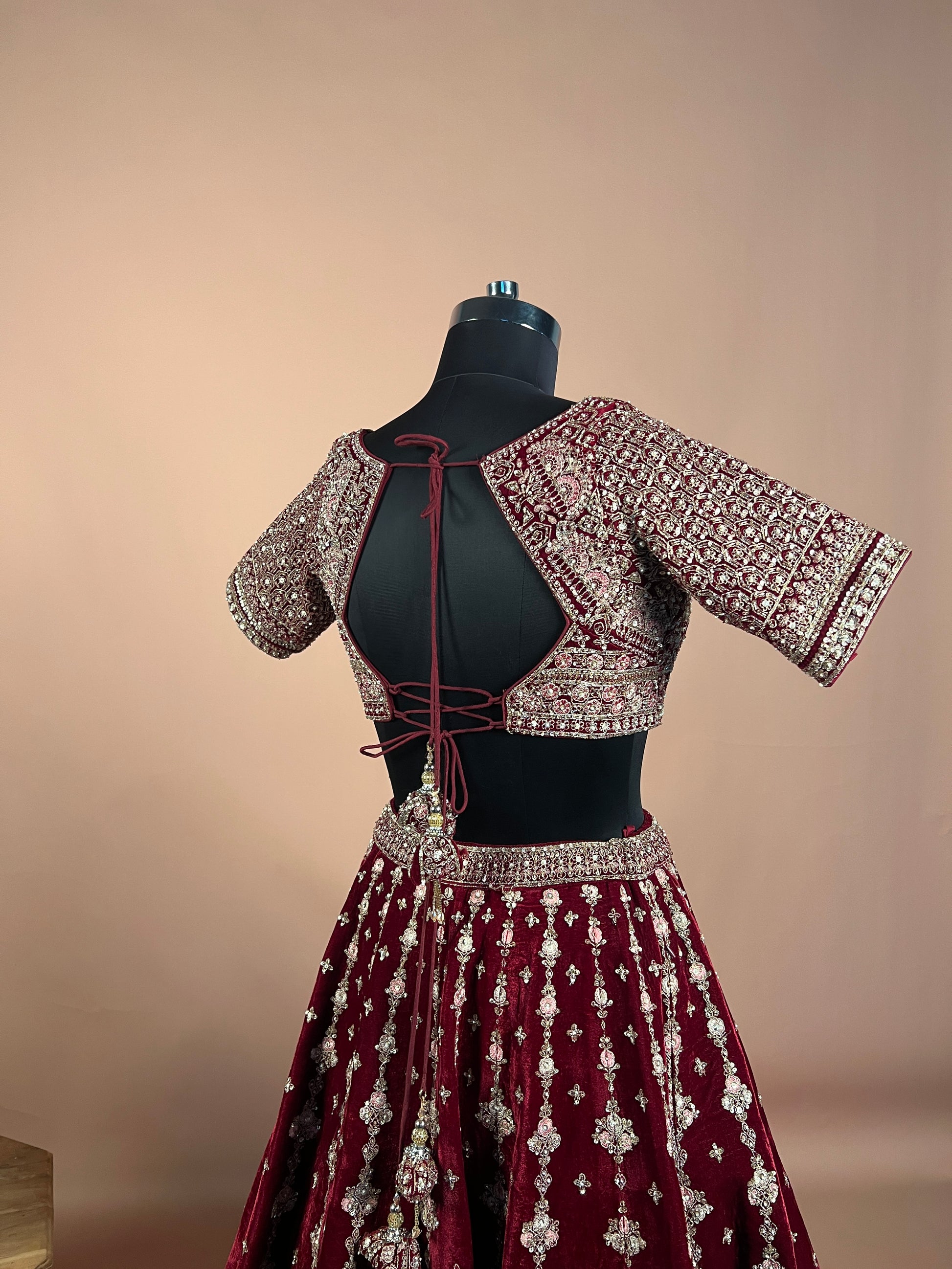 Maroon Velvet Zari & Sequin Heavy Bridal Lehenga Set