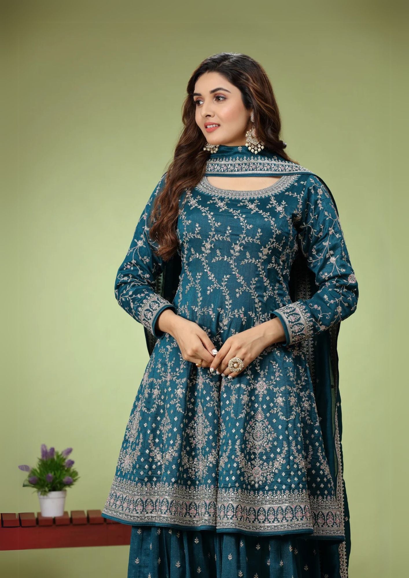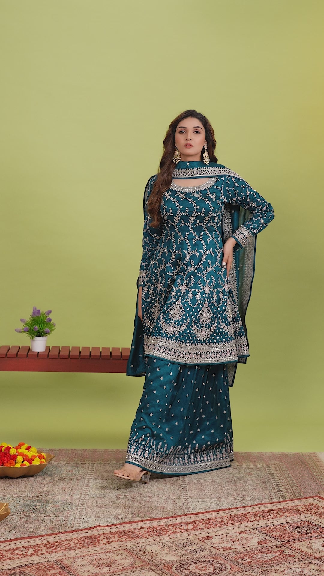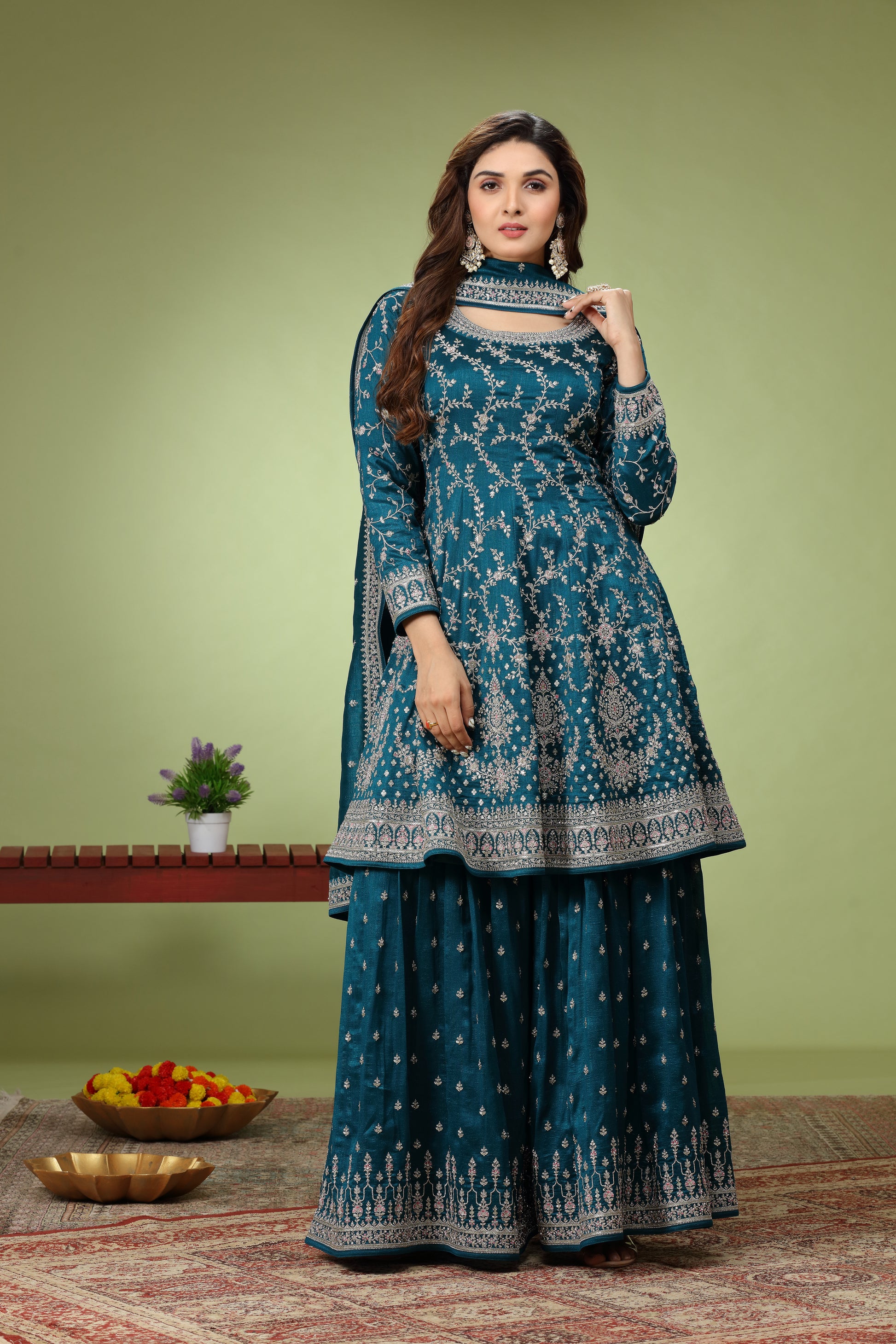 Mehndi Green Embroidered Patiala Kurti and Sharara set