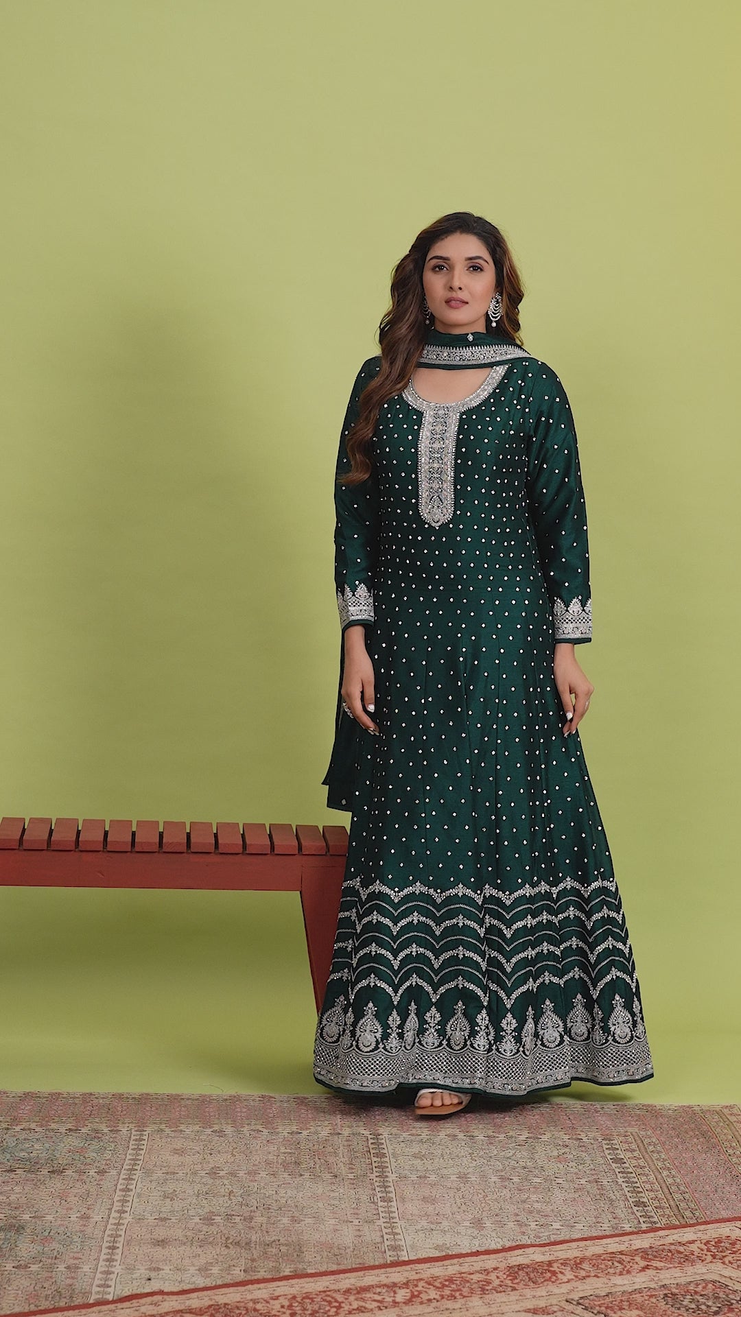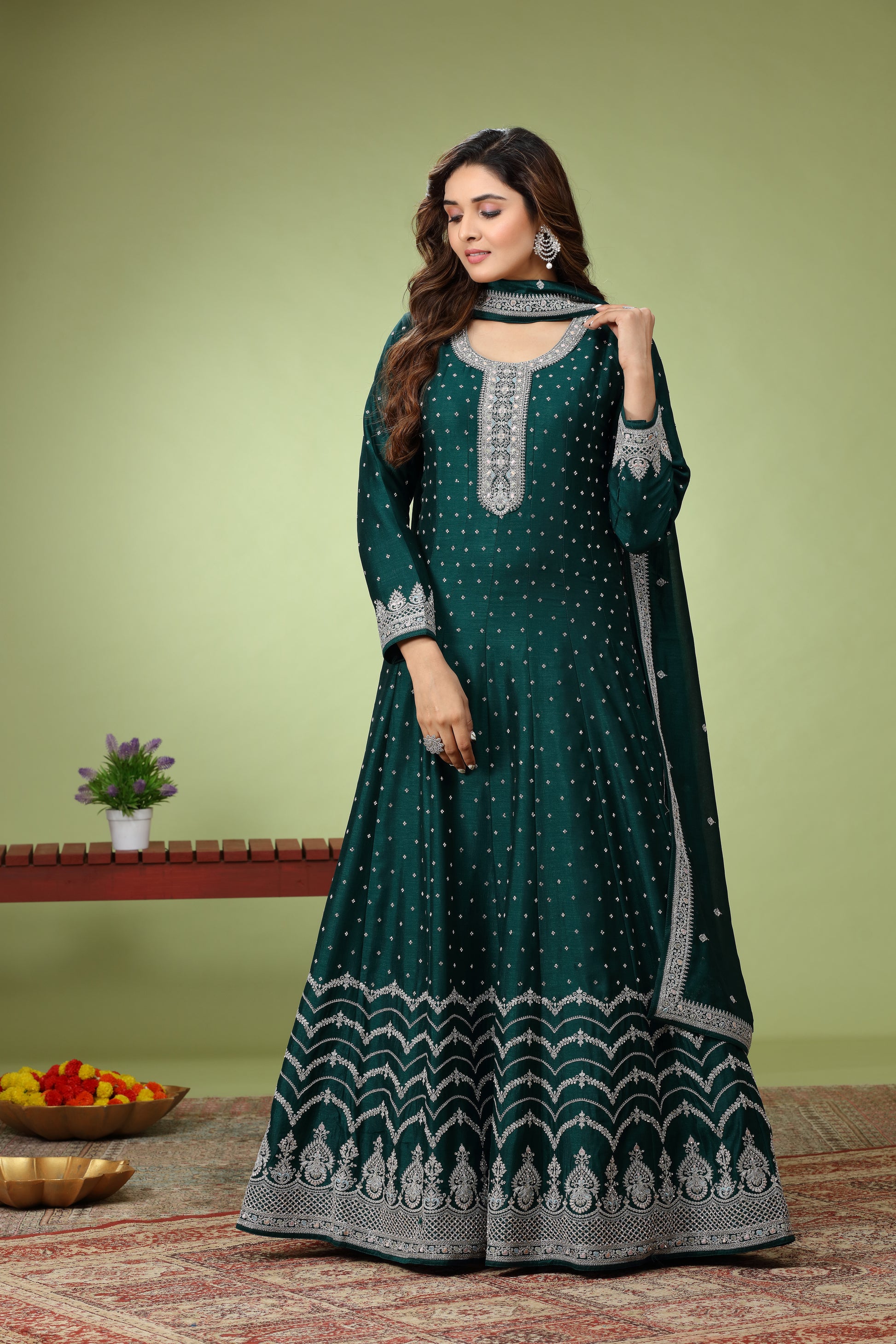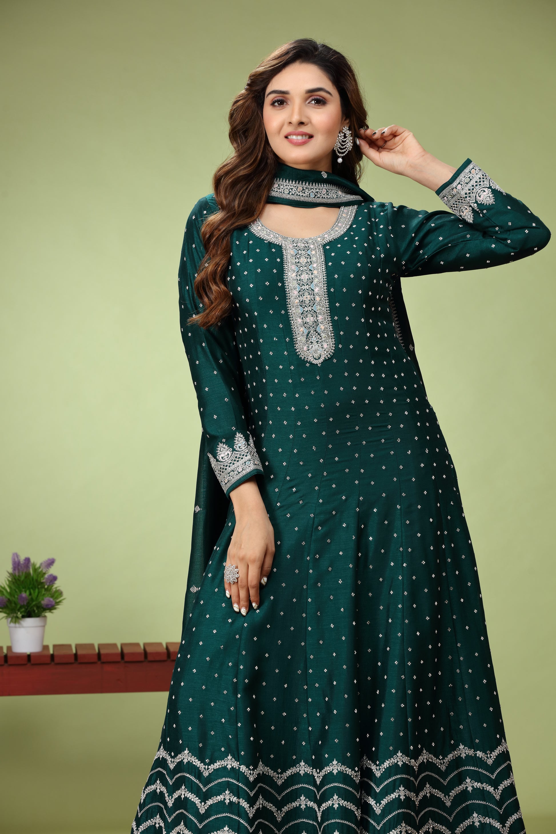 Mehndi Green Zariwork Art Silk Anarkali Suit