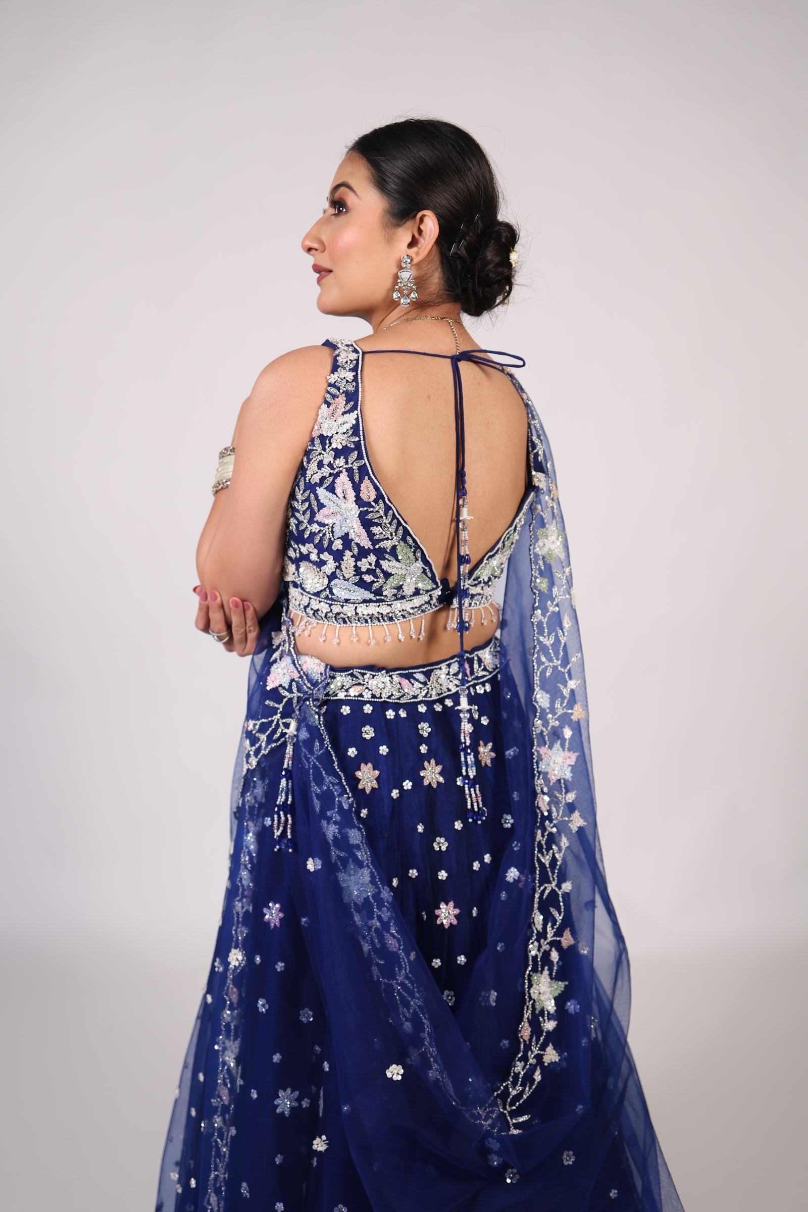 Midnight Blue Hand-Embroidered Festive Lehenga Choli