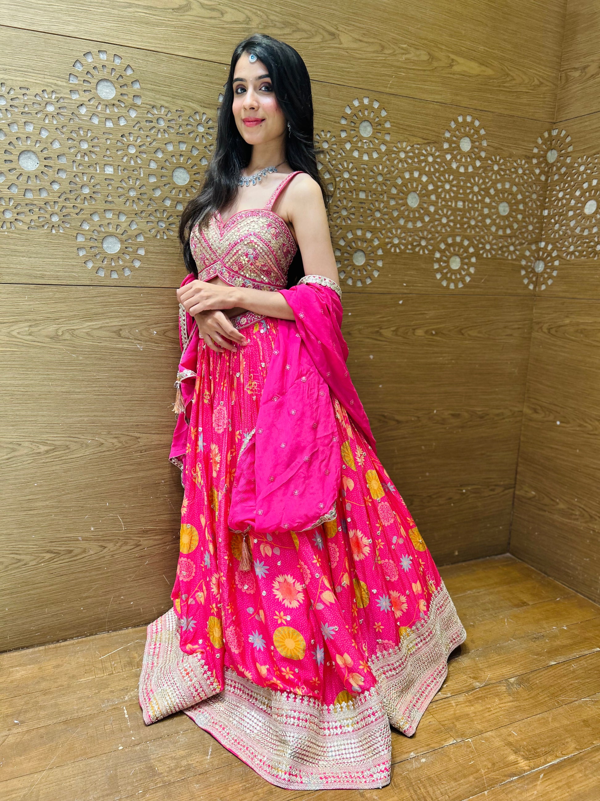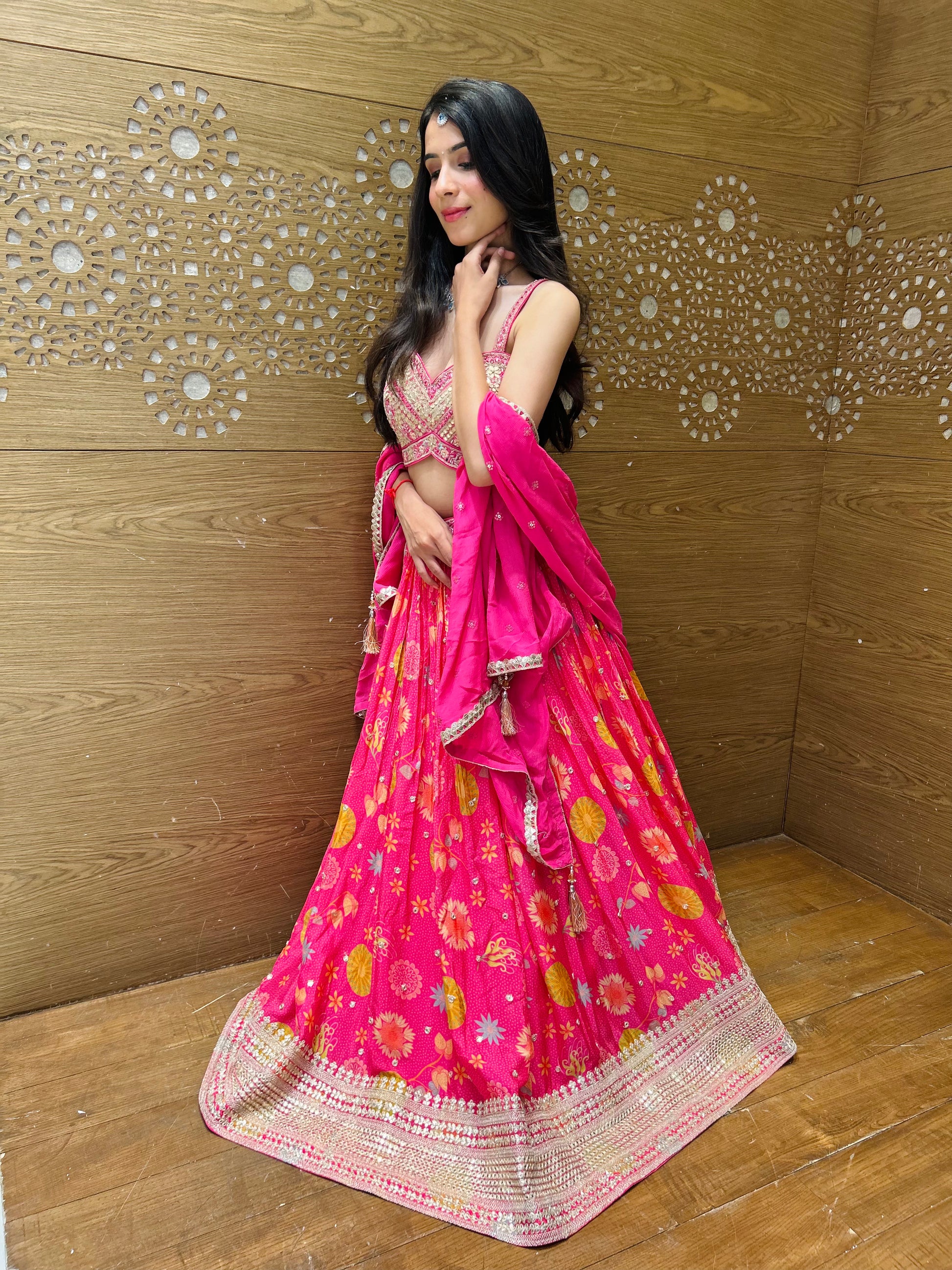 Indulge in the ultimate luxury with our exquisite Millennial Pink Organza Lehenga Choli. Featuring a sweetheart neckline and delicate organza fabric, this ensemble exudes elegance and sophistication. Embrace your inner fashionista and make a statement in this stunning piece.