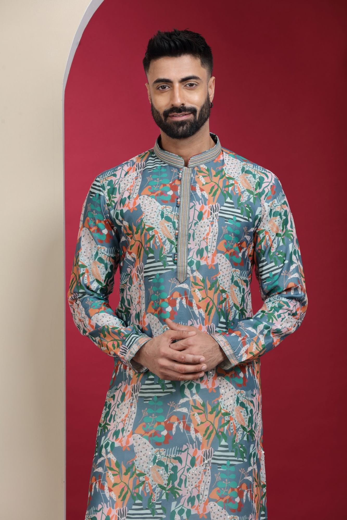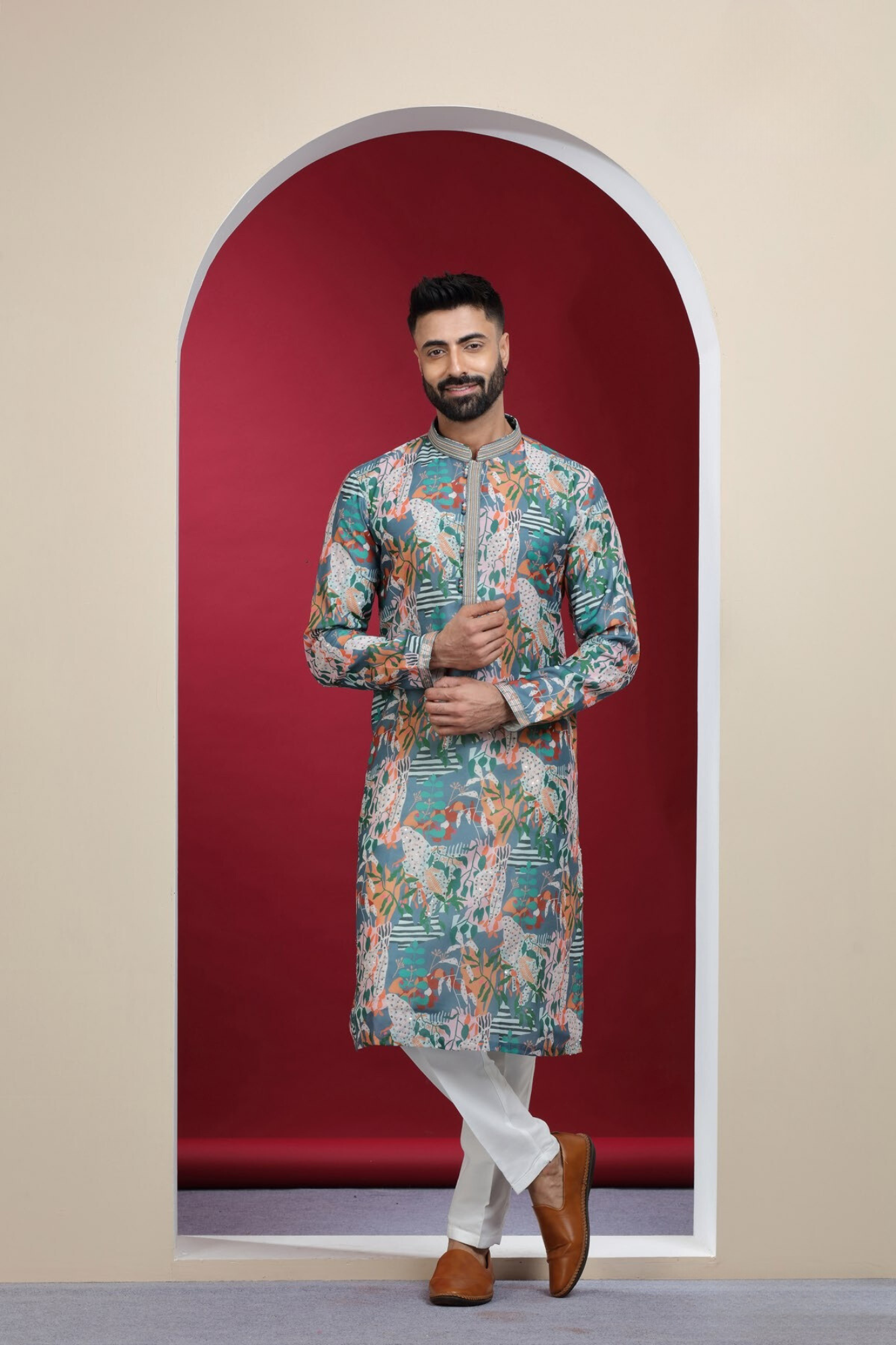 Get ready to add a pop of color to your wardrobe with our Mint Green Digit Print Kurta Set! With a unique digit print design, this kurta set will bring a touch of playfulness to any outfit. Perfect for any occasion, this set is both stylish and comfortable.