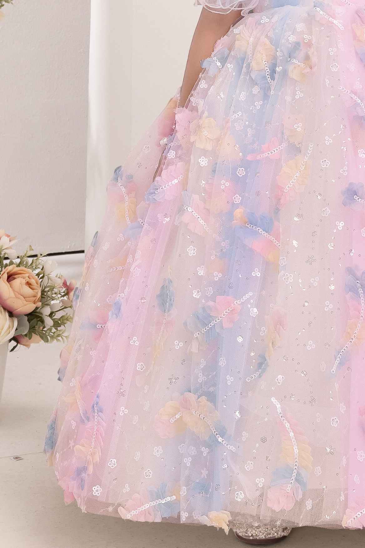 Transform your little girl into a glamorous princess with this multicolor sequin gown. Featuring ruffled asymmetrical sleeves, this gown adds a playful twist to its elegant design. Ideal for parties and dress-up, this gown will surely impress and delight. Comes in single packaging, with 1 gown included.