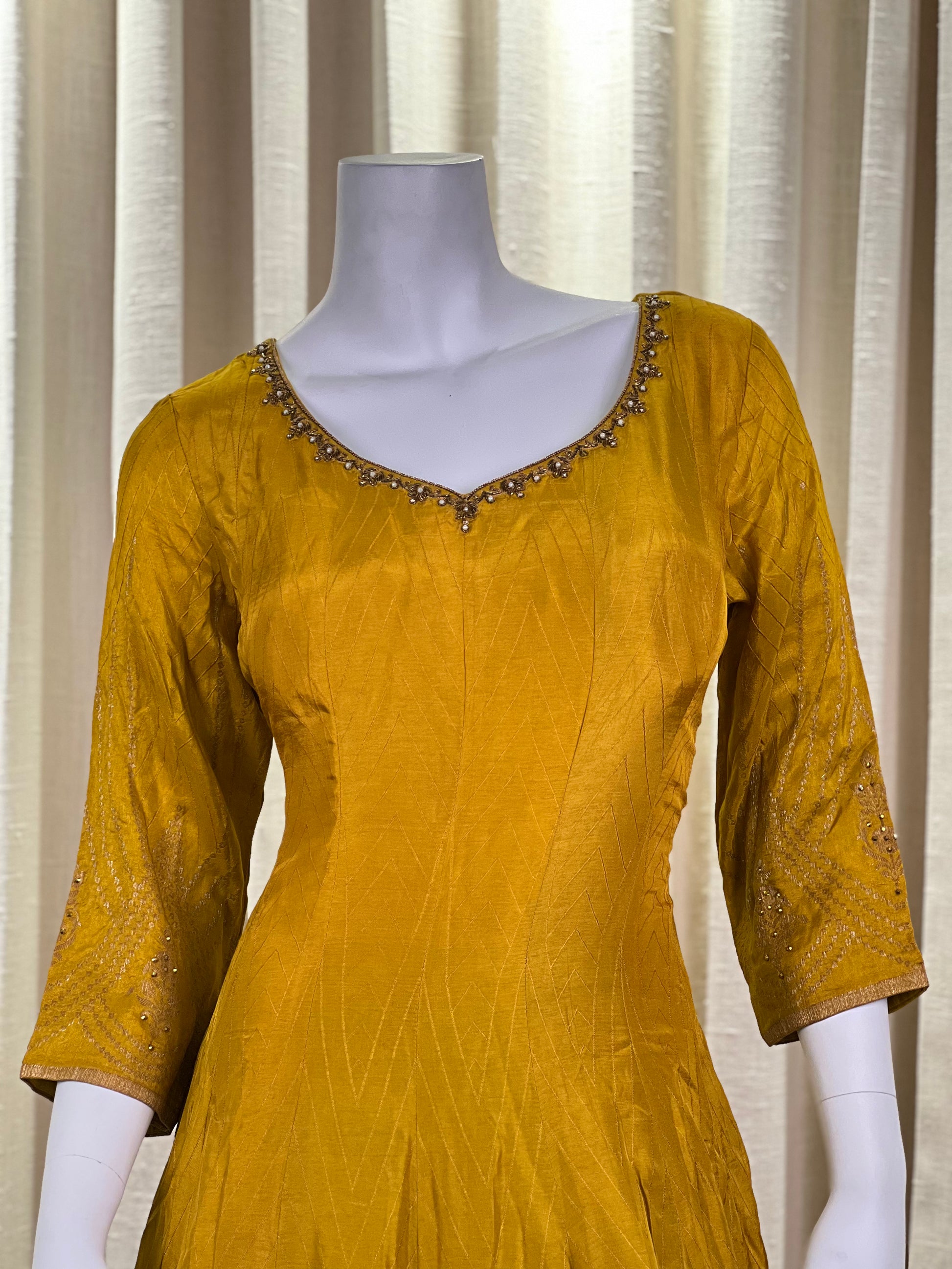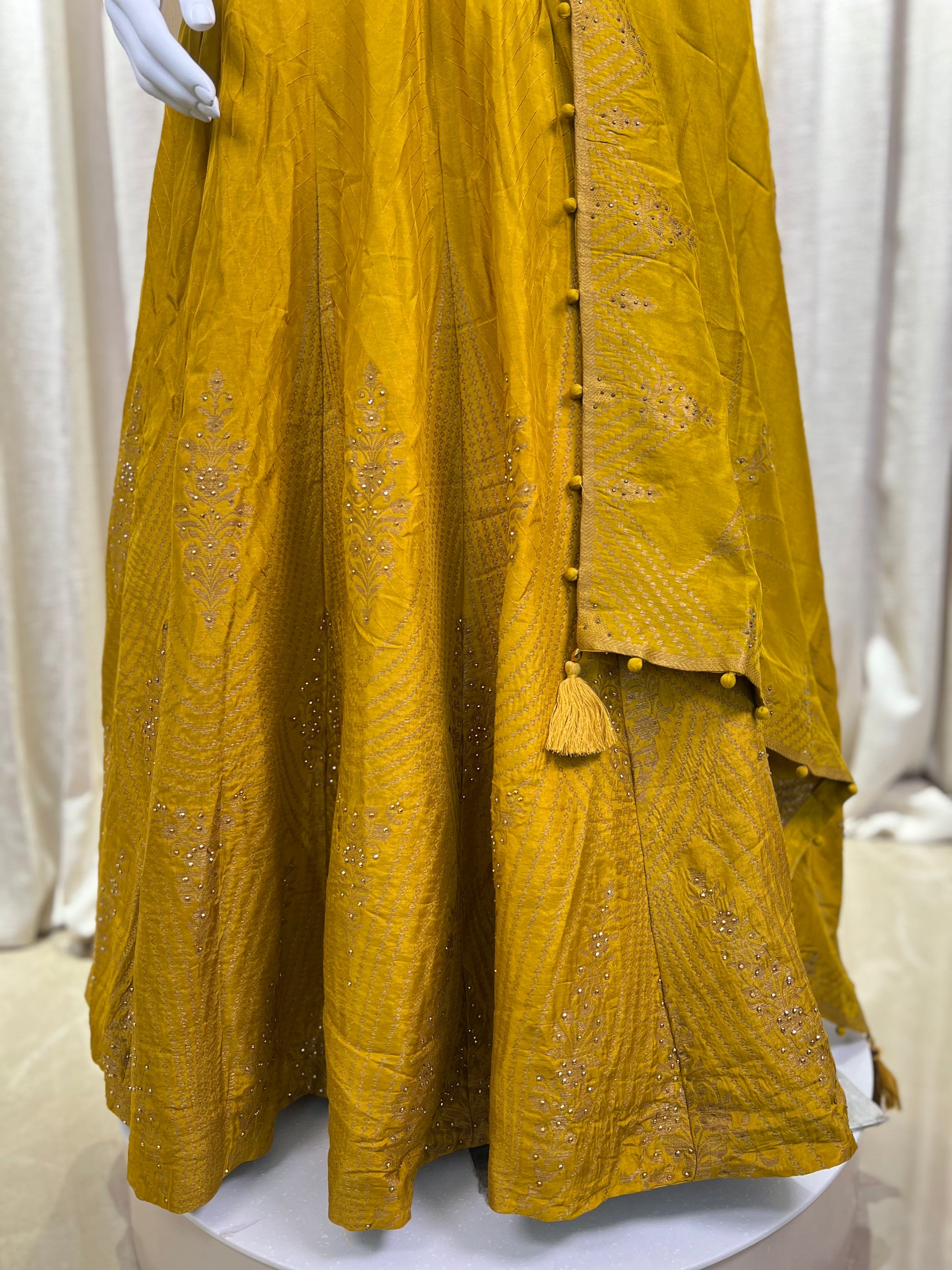 Mustard Yellow Anarkali Gown with Embellished Dupatta