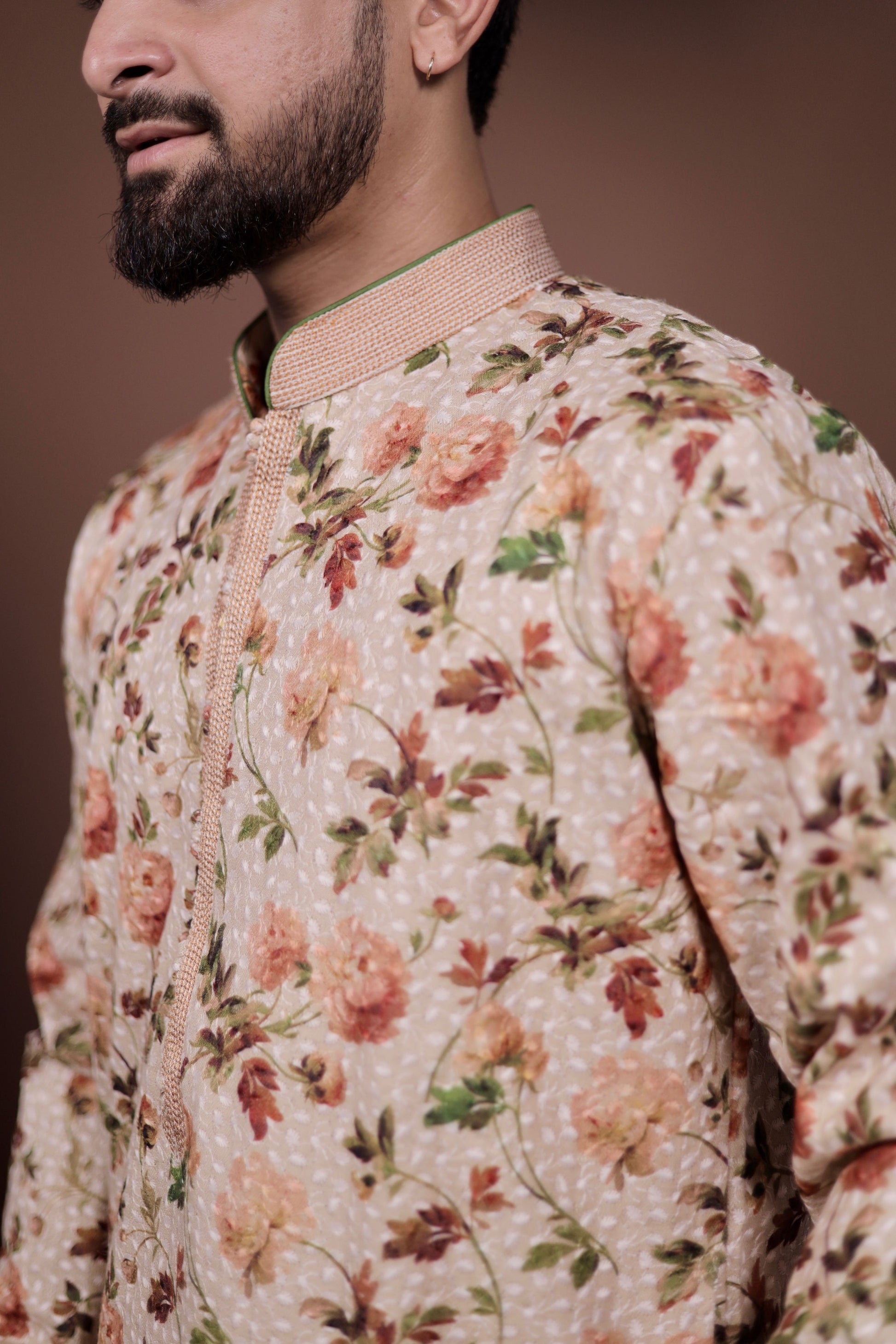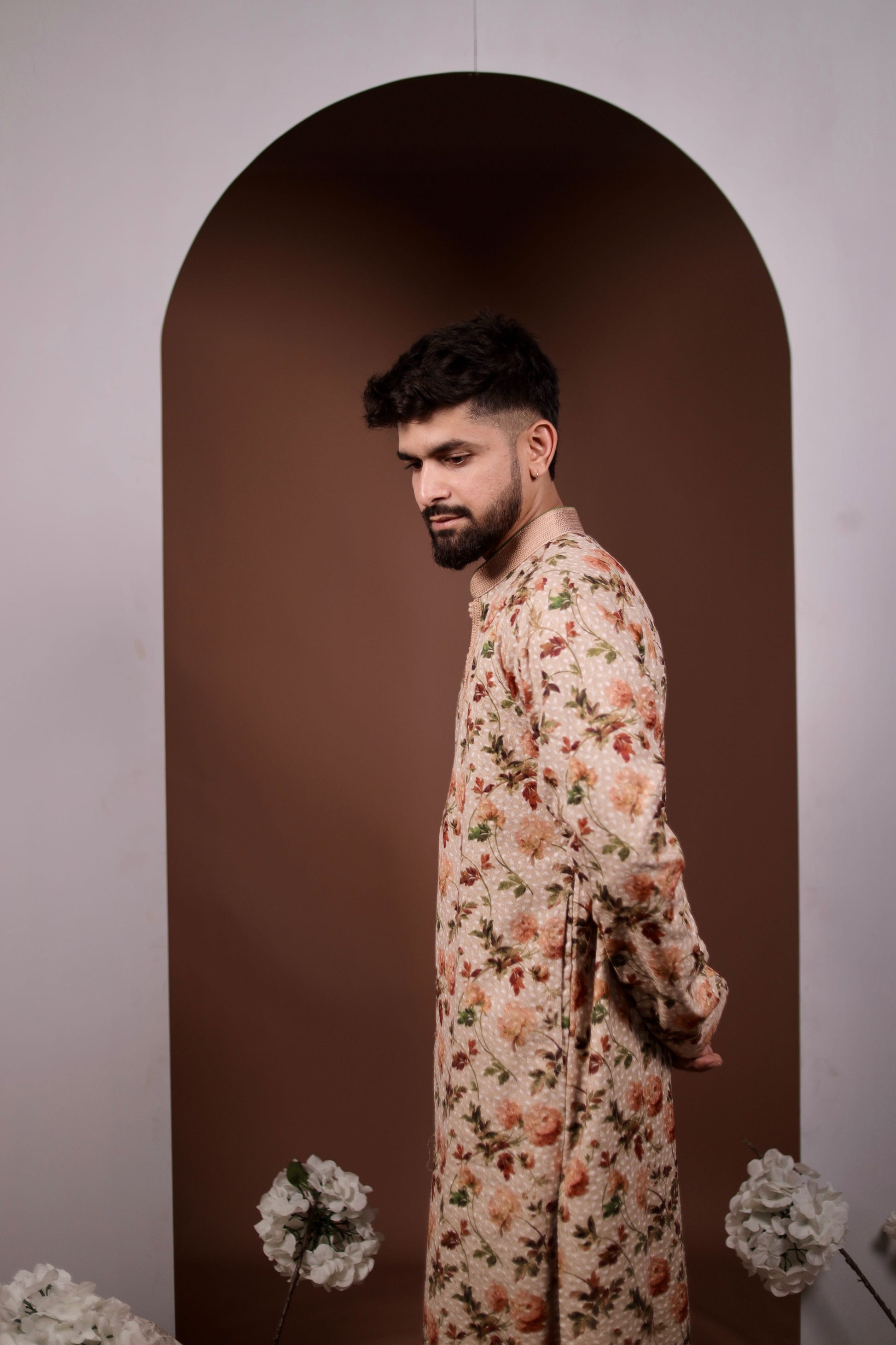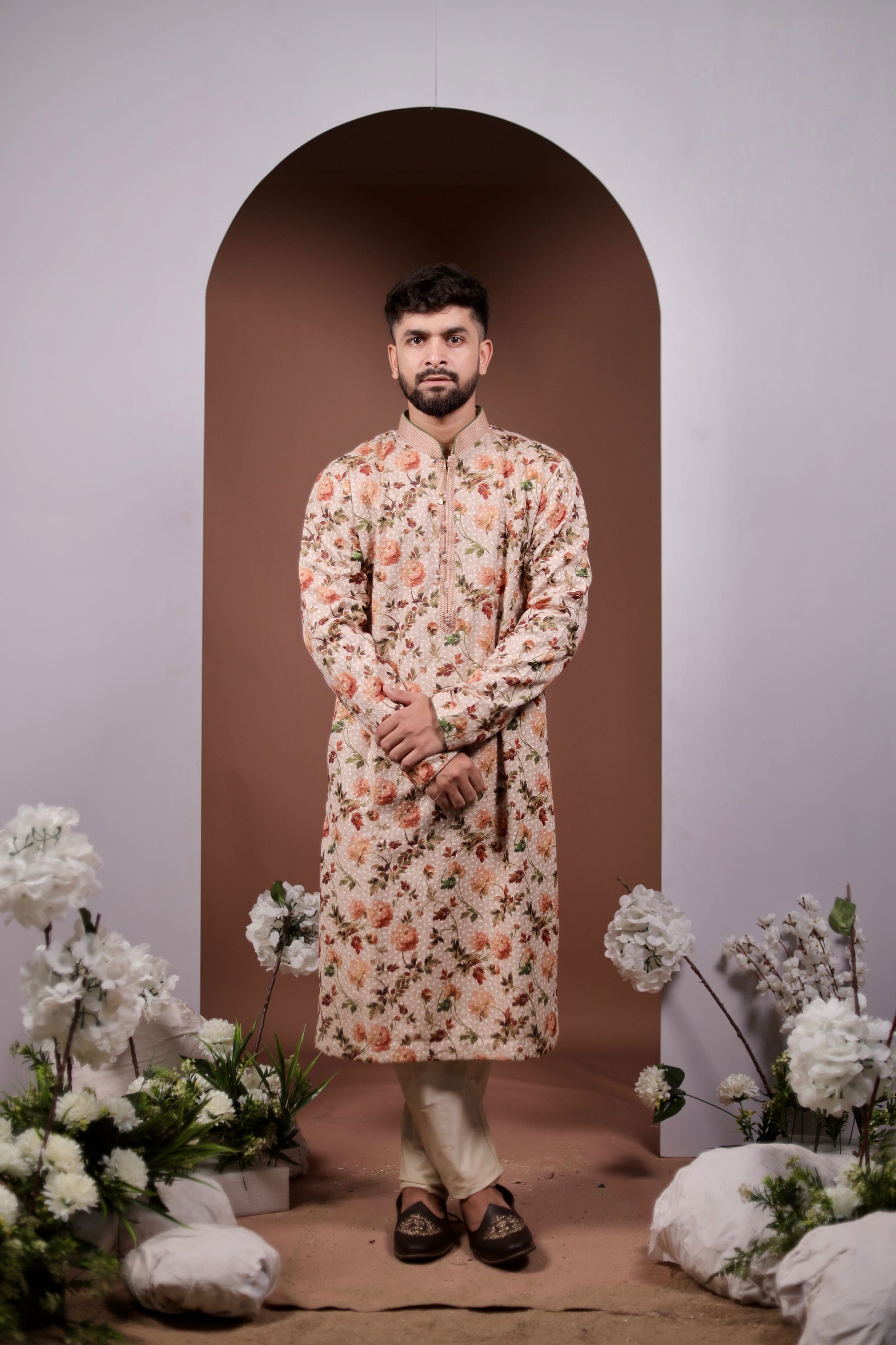 Embrace the beauty of nature with our "Nature’s Touch" fawn kurta, adorned with a stunning array of bright flower and leaf prints. This charming kurta effortlessly combines elegance and style, making it perfect for festive occasions or casual outings. The soft, breathable fabric ensures all-day comfort, while the vibrant floral patterns add a touch of whimsy. Paired with a classic white pajama, this ensemble creates a chic and coordinated look that’s sure to turn heads. Celebrate the joy of color and creativity with this delightful outfit that captures the essence of nature!