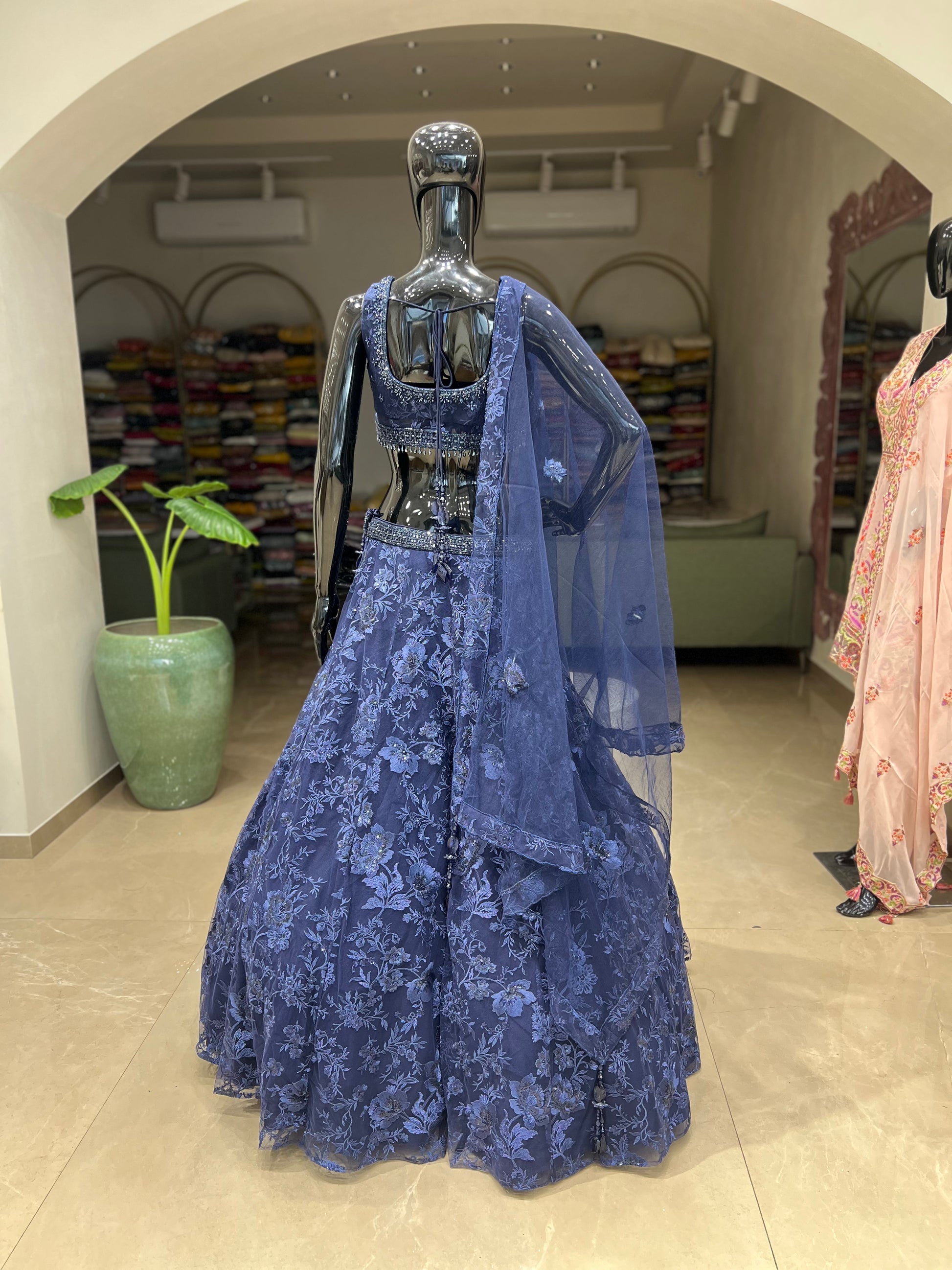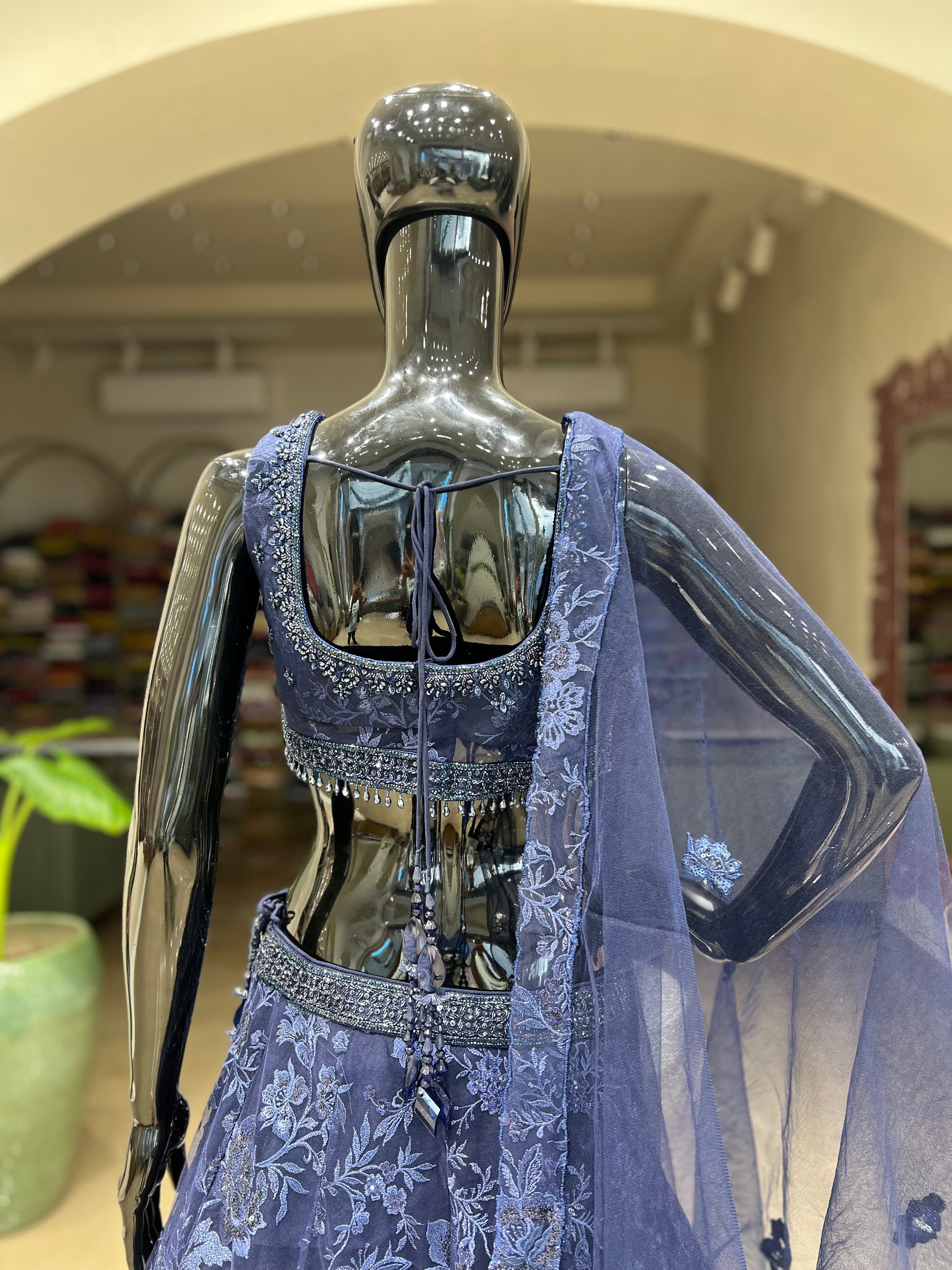 Navy Blue Flora Handcarfted with sequence work Lehnga Choli