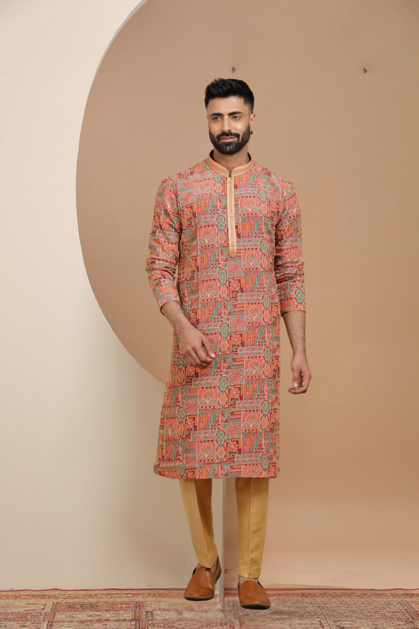 Take your style game to the next level with this Orange Handcrafted Kurta Set. Made with love and attention to detail, this set features a vibrant orange color and handcrafted design that will make you stand out from the crowd. Upgrade your wardrobe and be the talk of the town!