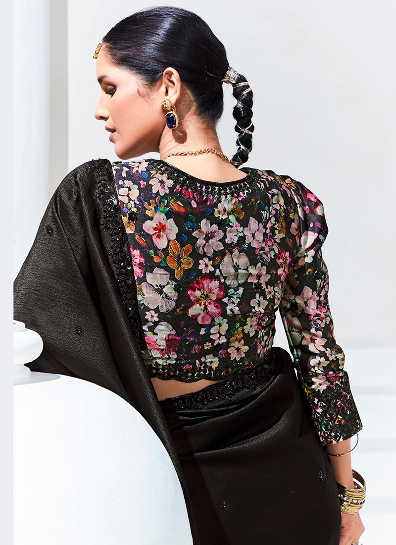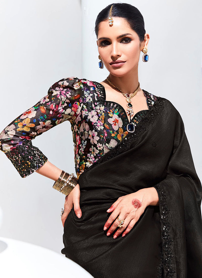 Organza Black Traditional Wear Saree with Embroidery Work