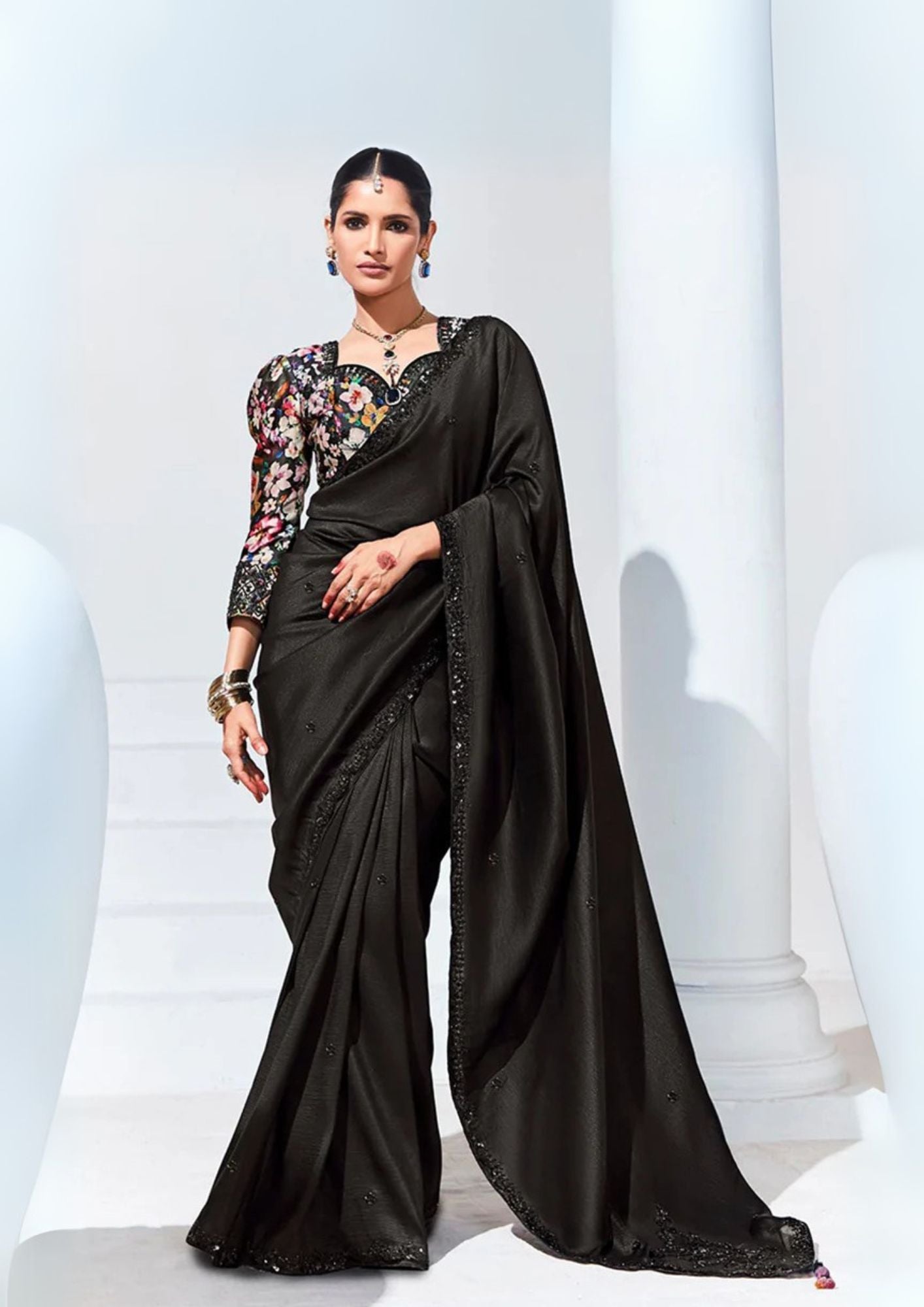 Elevate your style with our Organza Black traditional wear saree. Exquisitely crafted with delicate embroidery work, this saree exudes elegance and sophistication. The lightweight Organza fabric adds a touch of luxury, making it perfect for any formal occasion. Enhance your wardrobe with this timeless piece.