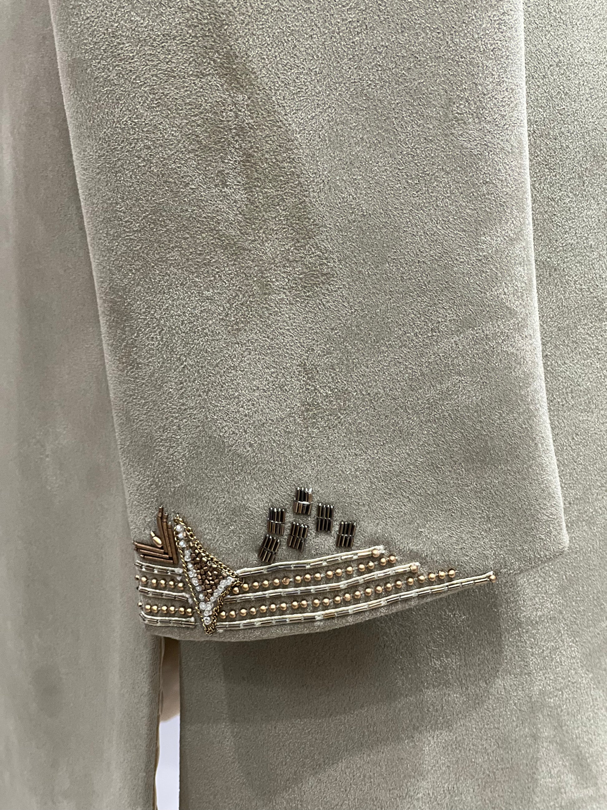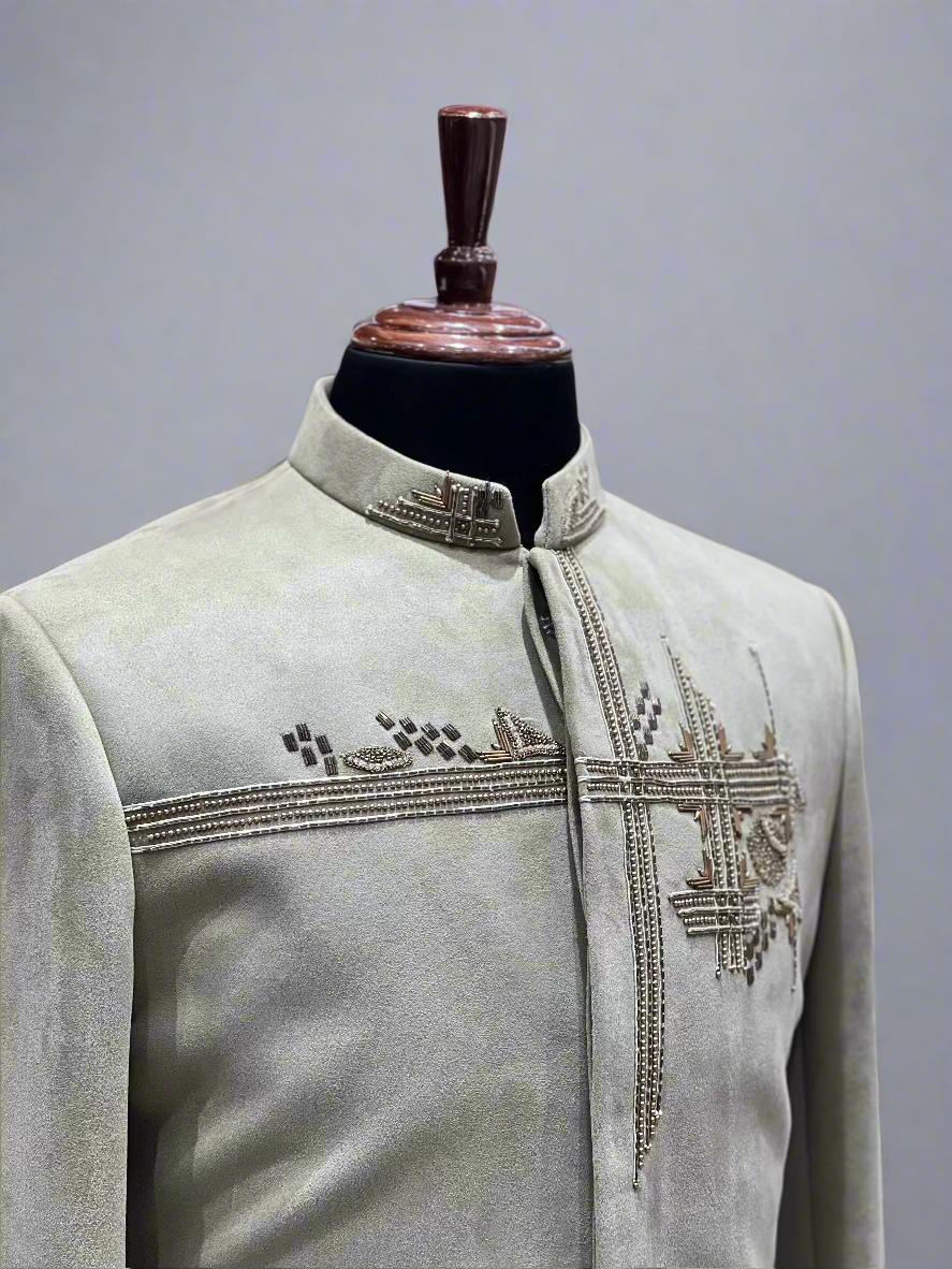 Pastel Green Suede Sherwani with Hand Embroidered Shoulder Motif
