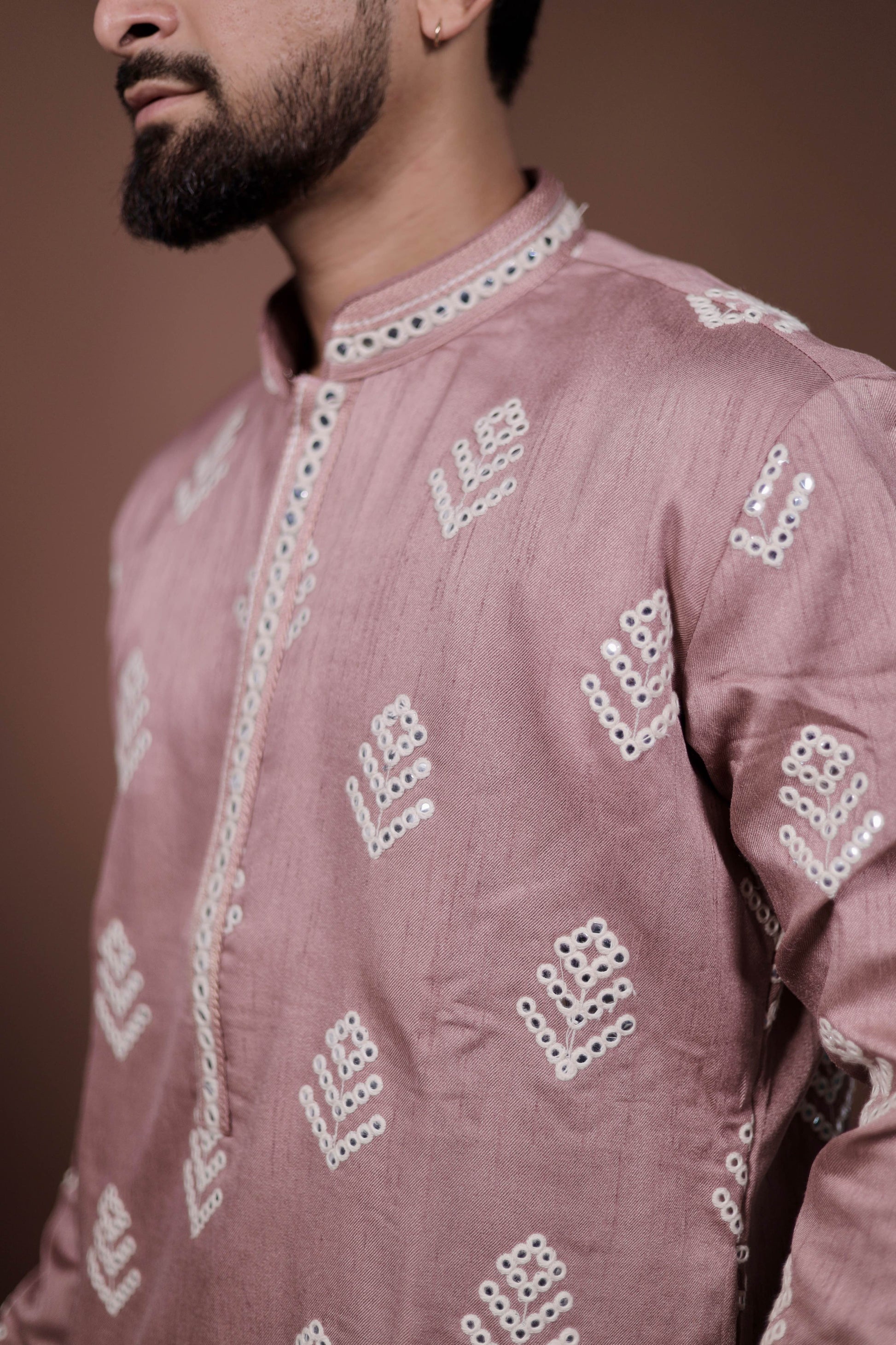 Turn heads with our Peach Kurta! This unique piece features intricate mirror work, adding a touch of glamour to your outfit. Perfect for any event, this kurta is sure to make a statement. Don't just blend in, stand out in style with our Peach Kurta!