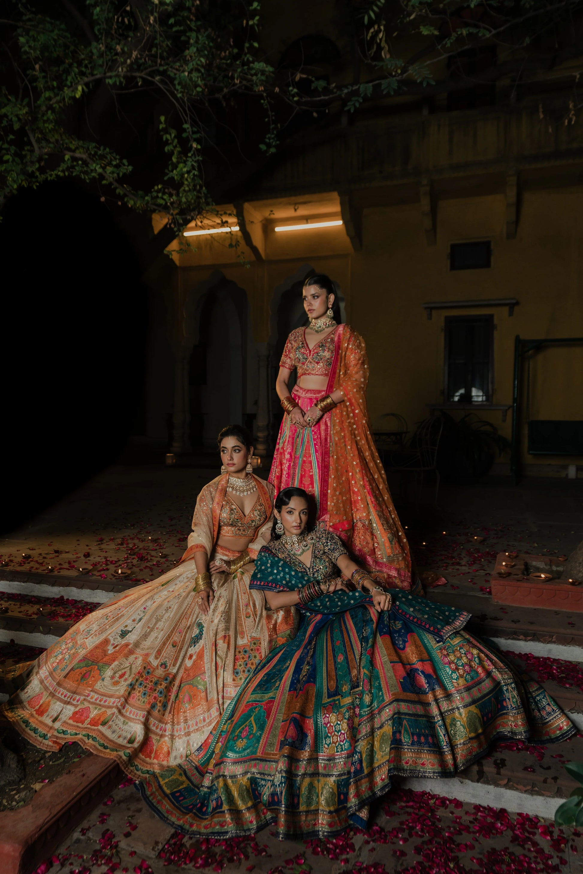 Perfect for wedding functions, sangeets, or festive evenings, this ensemble balances vintage aesthetics with modern elegance.