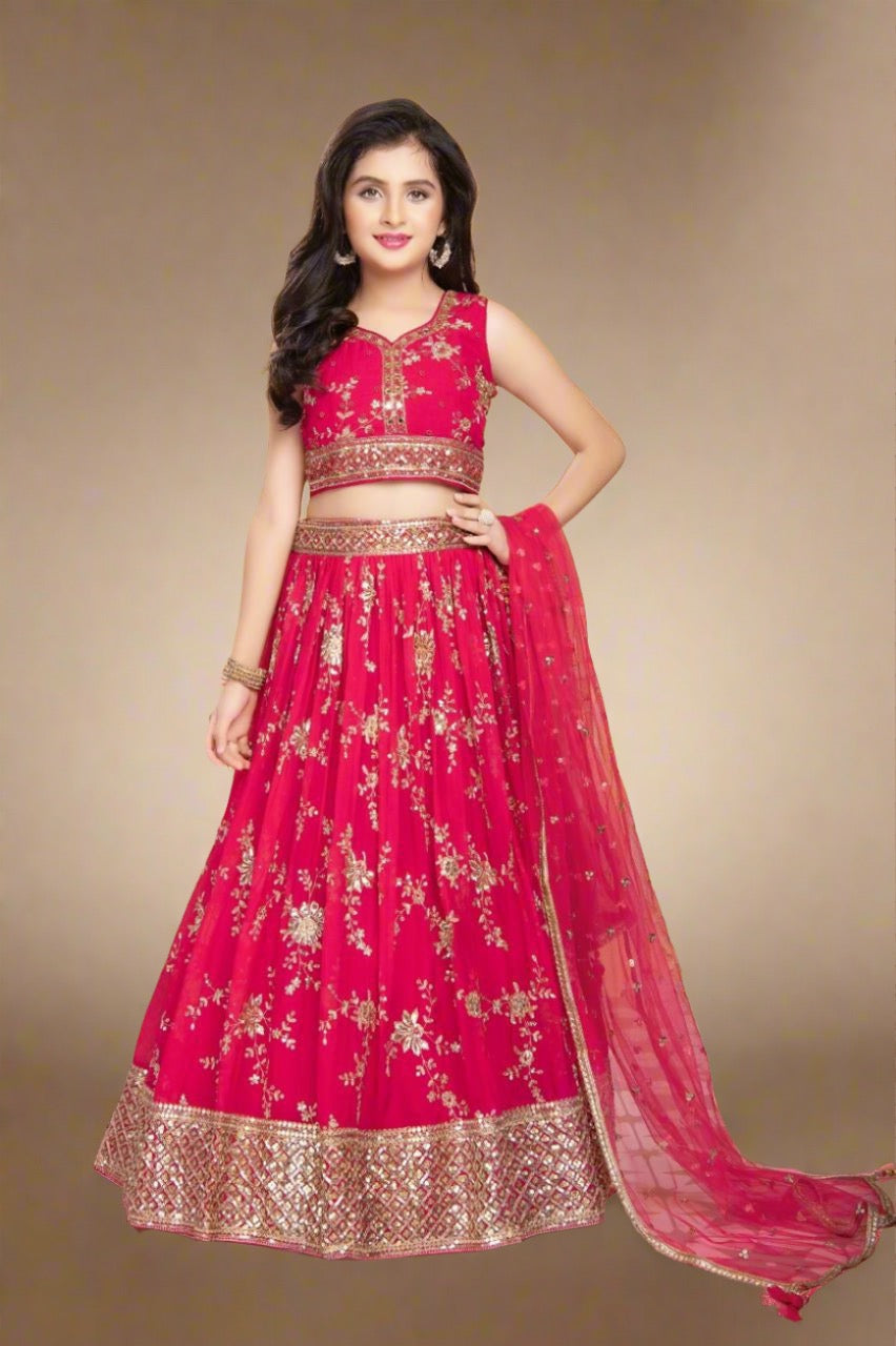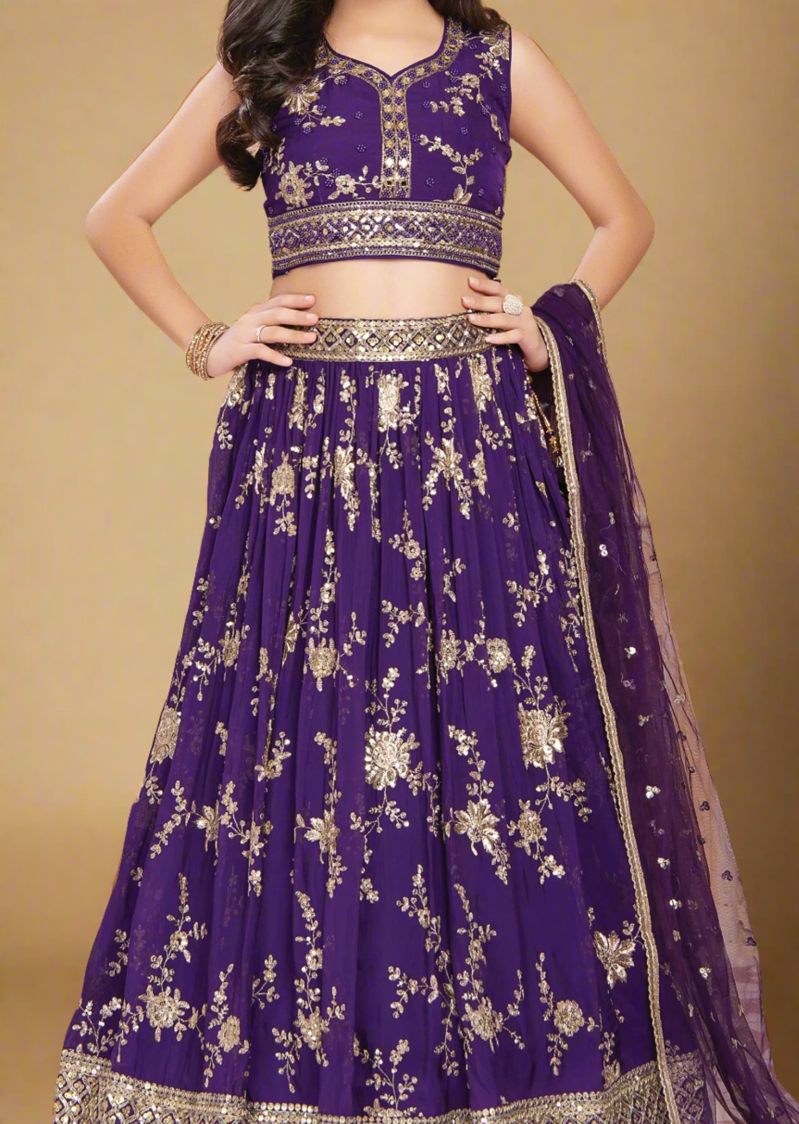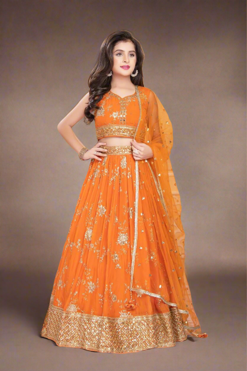 Our Kids Lehenga Choli collection features beautifully embroidered blouses, ensuring both comfort and style with a variety of necklines and sleeve options. Paired with lightweight dupattas adorned with elegant borders and vibrant colors, each set is crafted to make your little one shine at any occasian.
