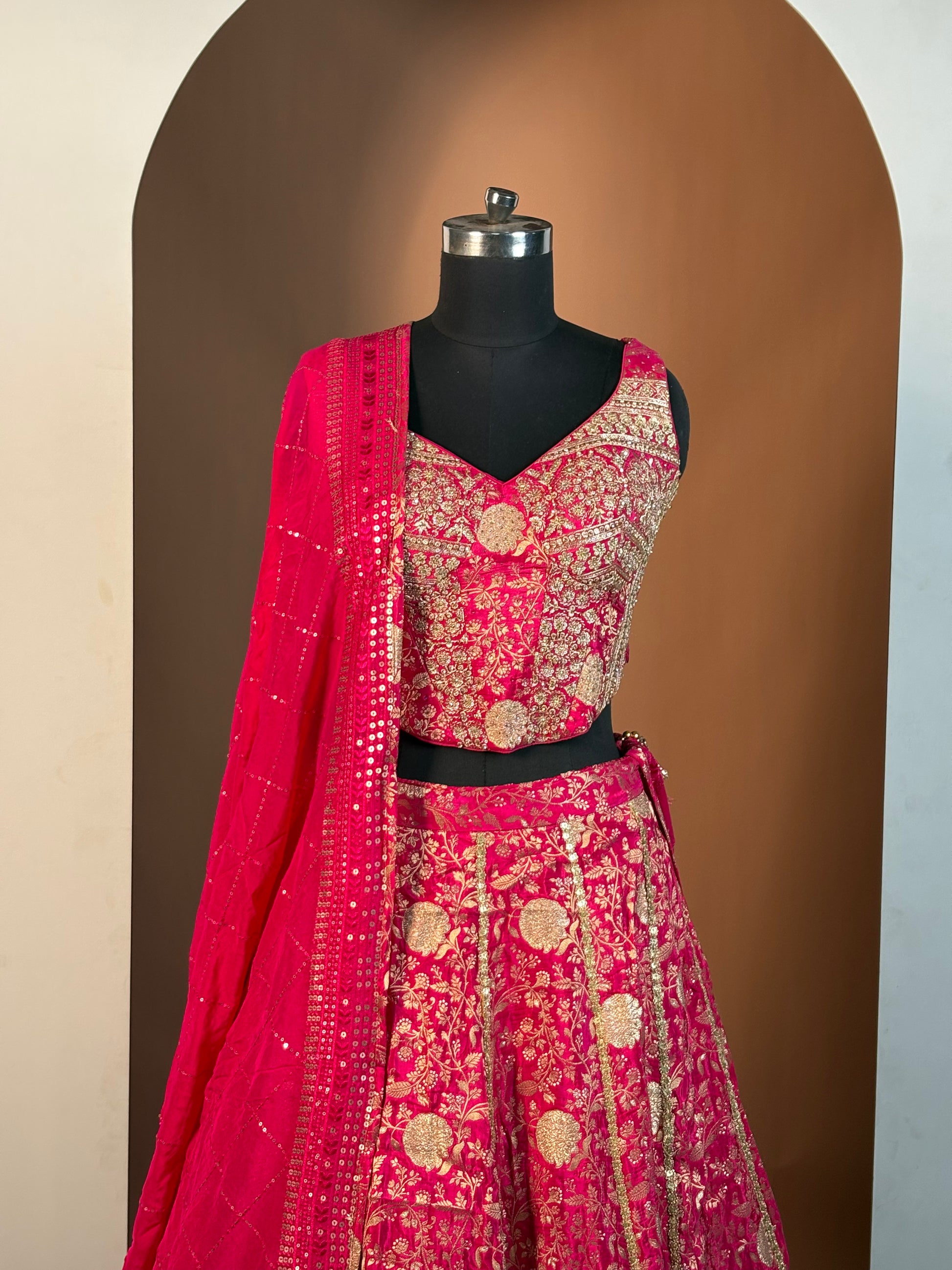 Rani Pink and Gold Zardozi Embroidered Bridal Lehenga Set