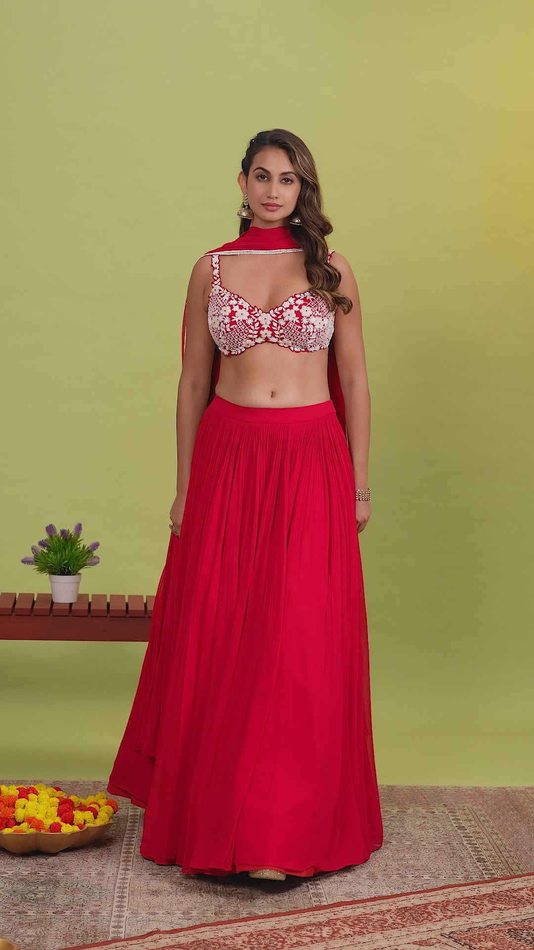 Be the belle of the ball in our Red Lehenga Set! This stunning set features a hand embroidered blouse with delicate floral pearls, adding a touch of elegance to the bold red lehenga. Perfect for any special occasion, this set will make you stand out in style.