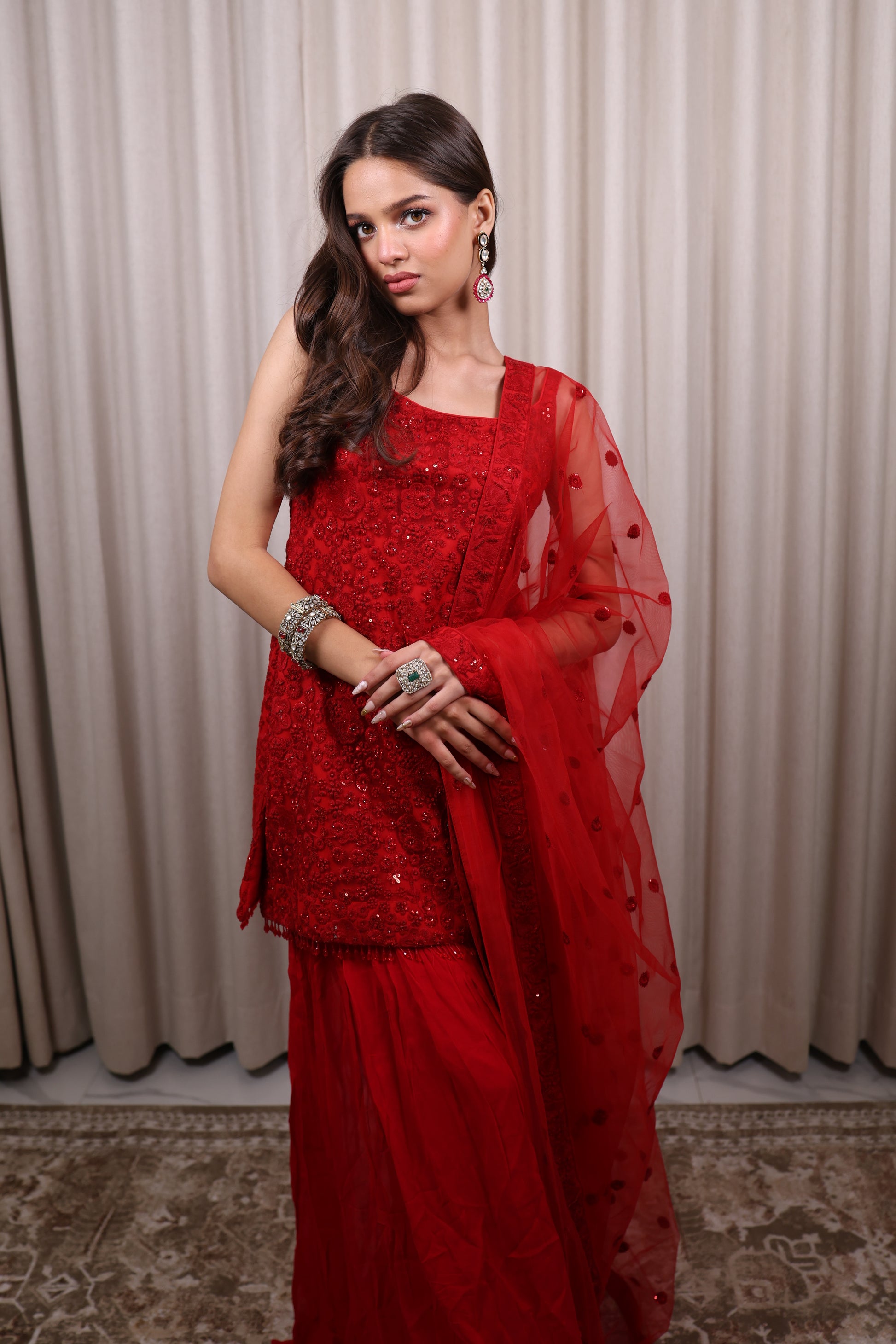 Red Sharara Suit