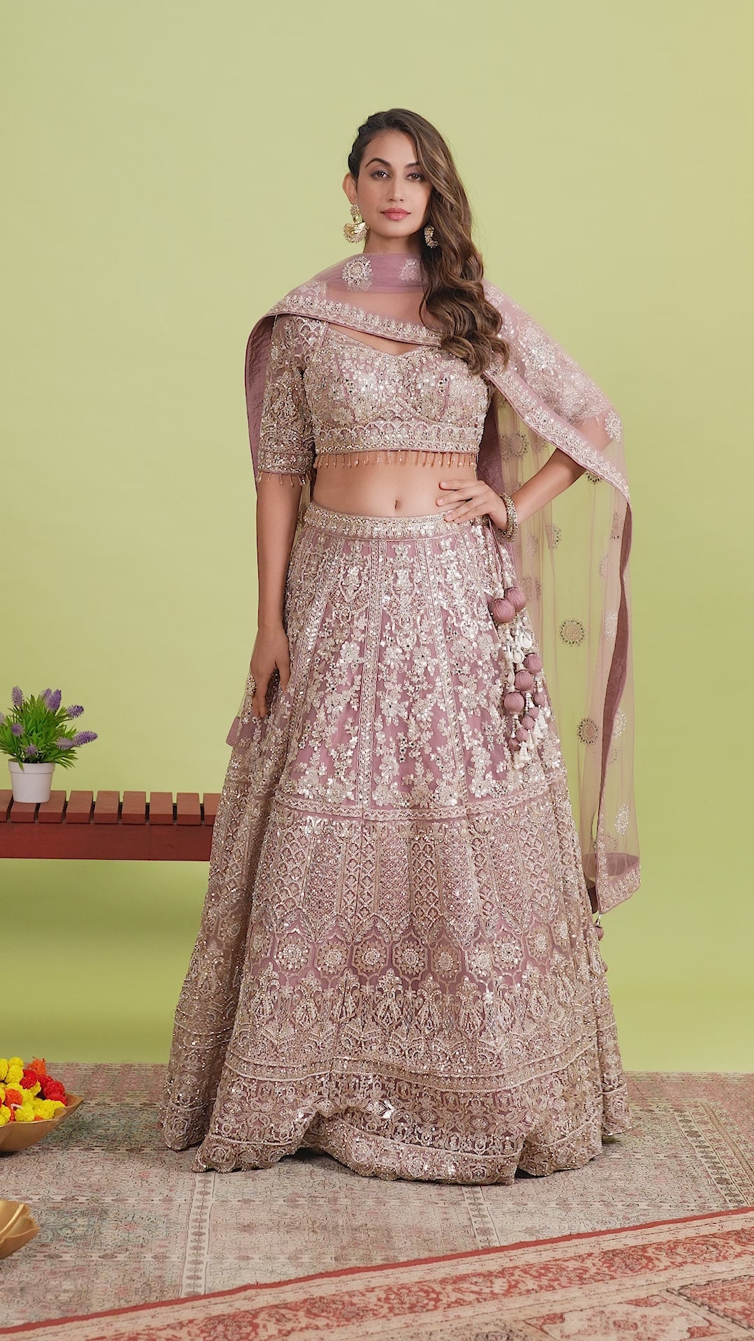 Get ready to stun in this Rose Quartz Pink Sequenced Lehenga Choli. Made from exclusive bridal net fabric with intricate sequin detailing, this lehenga choli is perfect for your special day. The stunning rose quartz pink color is sure to turn heads and make you stand out.