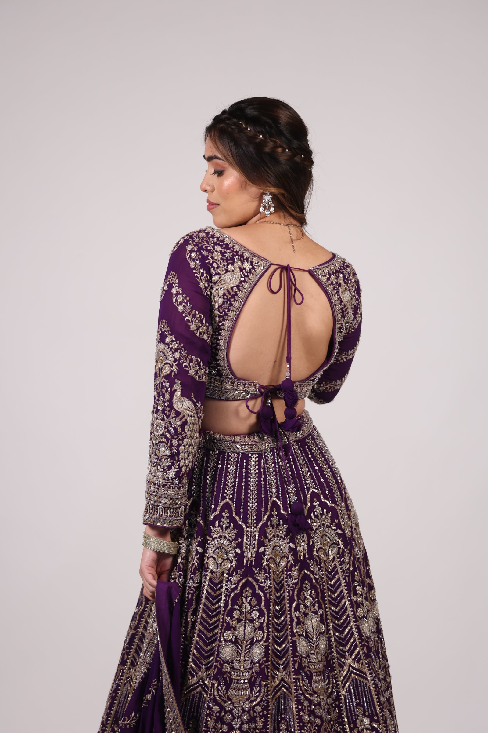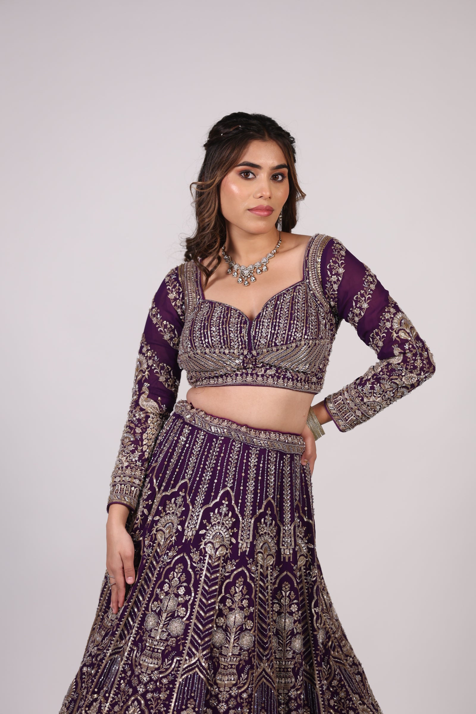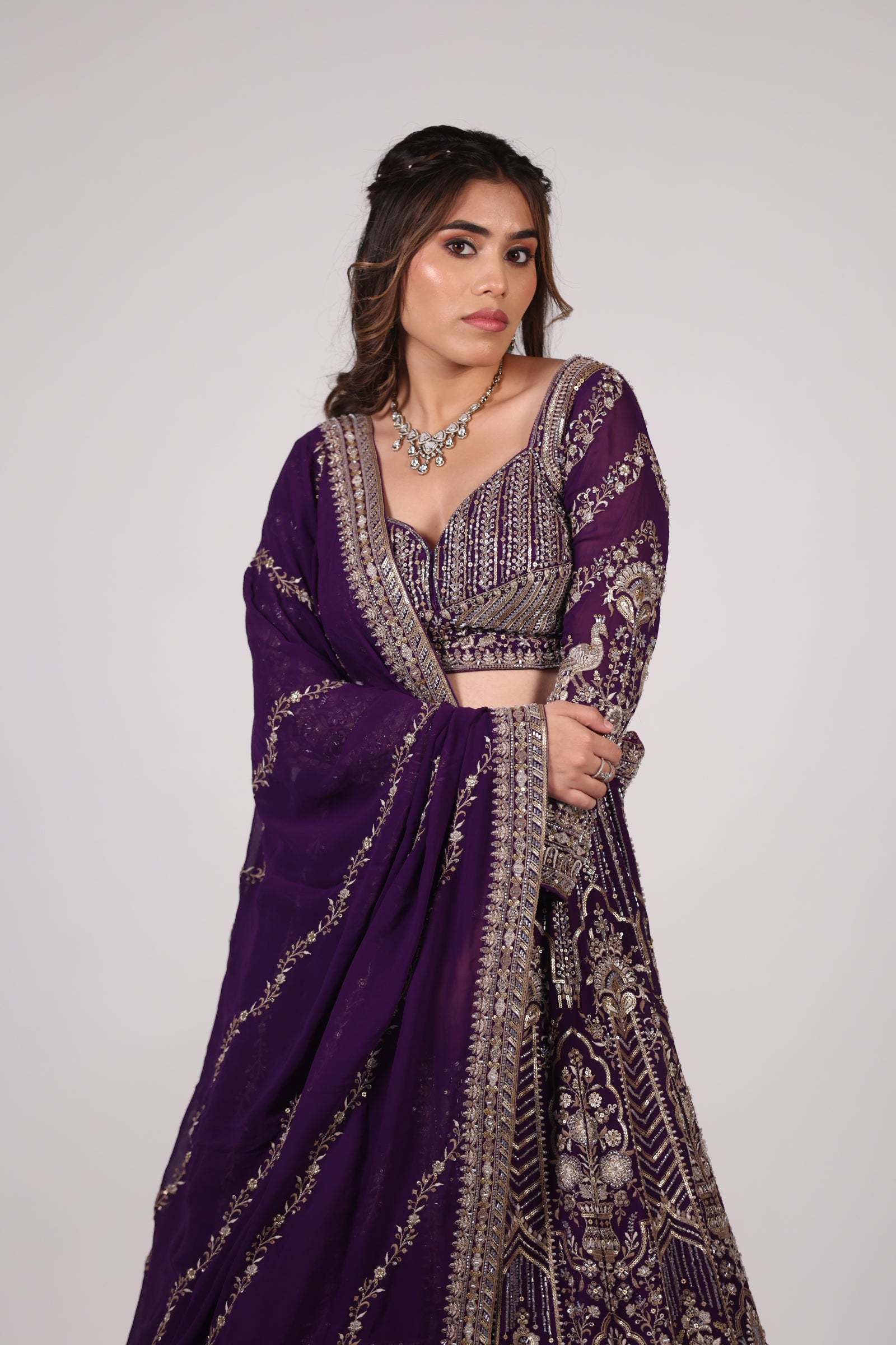 Royal Amethyst Purple Zari-Embroidered Lehenga Choli