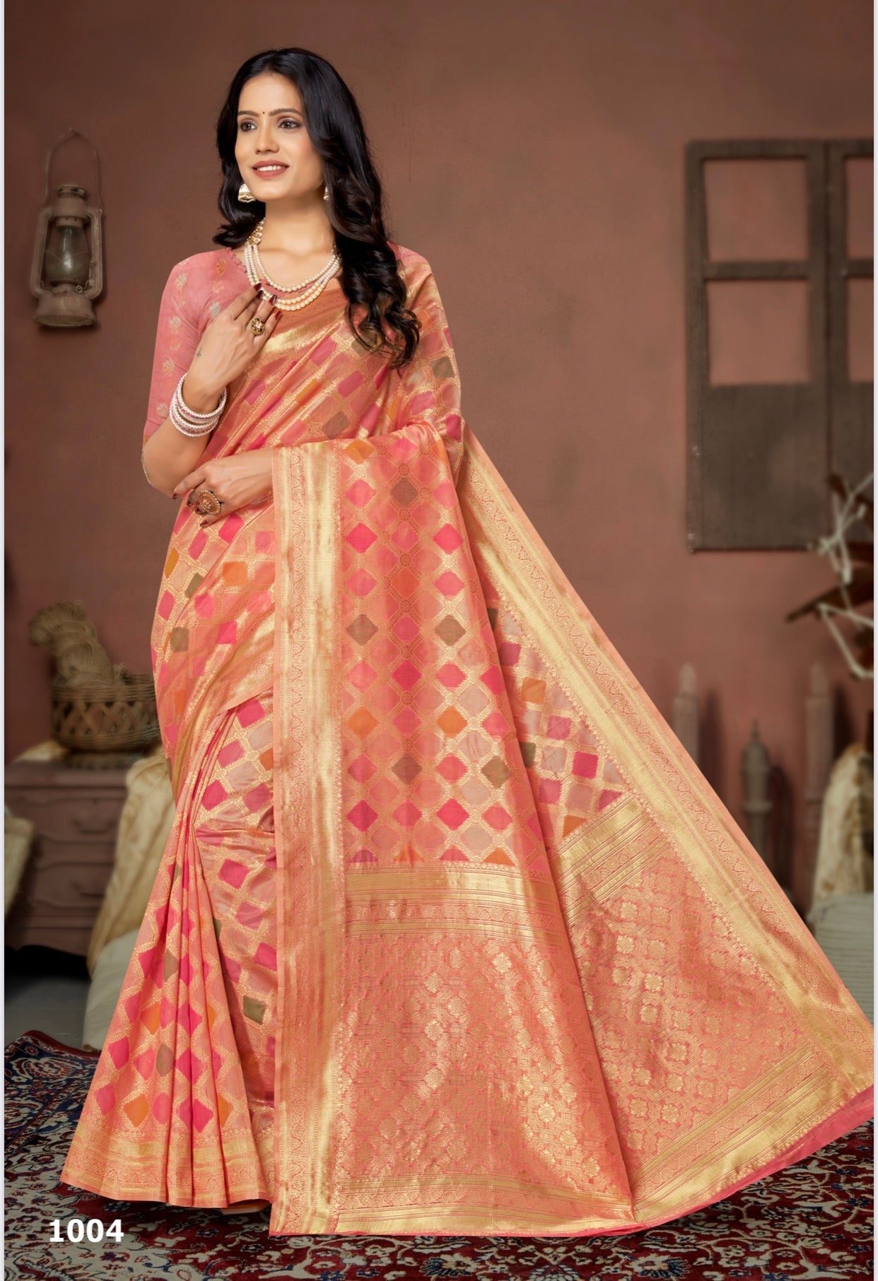 Peach Banarasi Fancy Cotton Silk Saree
