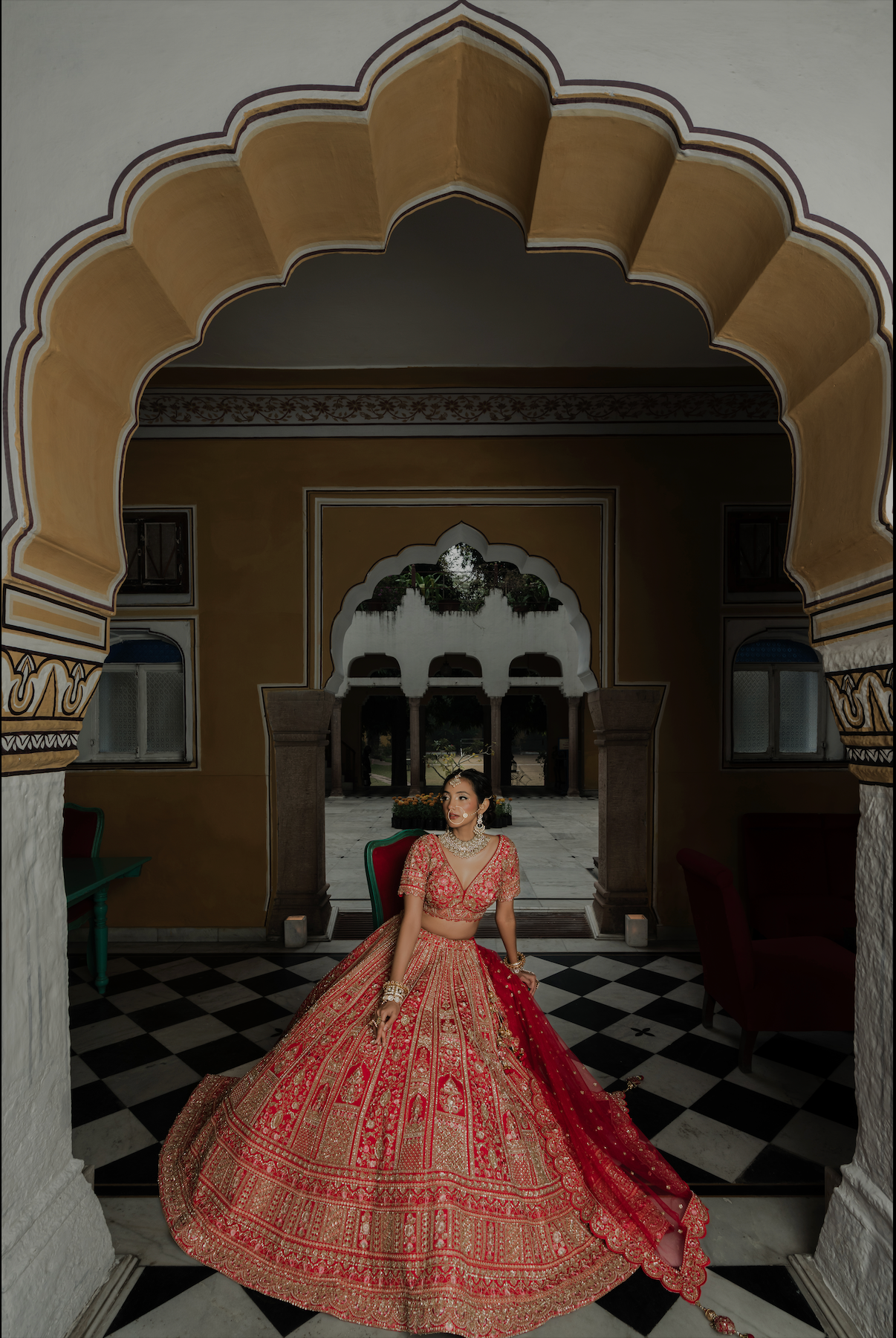 Whether you're walking down the aisle or lighting up a reception, this Scarlet Red Lehenga Choli Set ensures you look radiant, regal, and unforgettable.