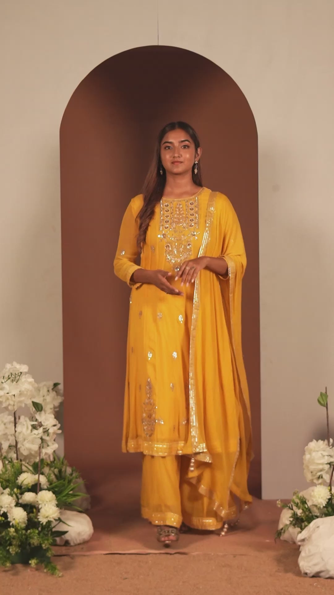 Be the belle of the ball in this stunning Yellow Anarkali Suit! With a vibrant yellow color and intricate sequin embroidered floral design, you'll be sure to turn heads. The perfect mix of elegance and playfulness, this suit will make you stand out from the crowd.